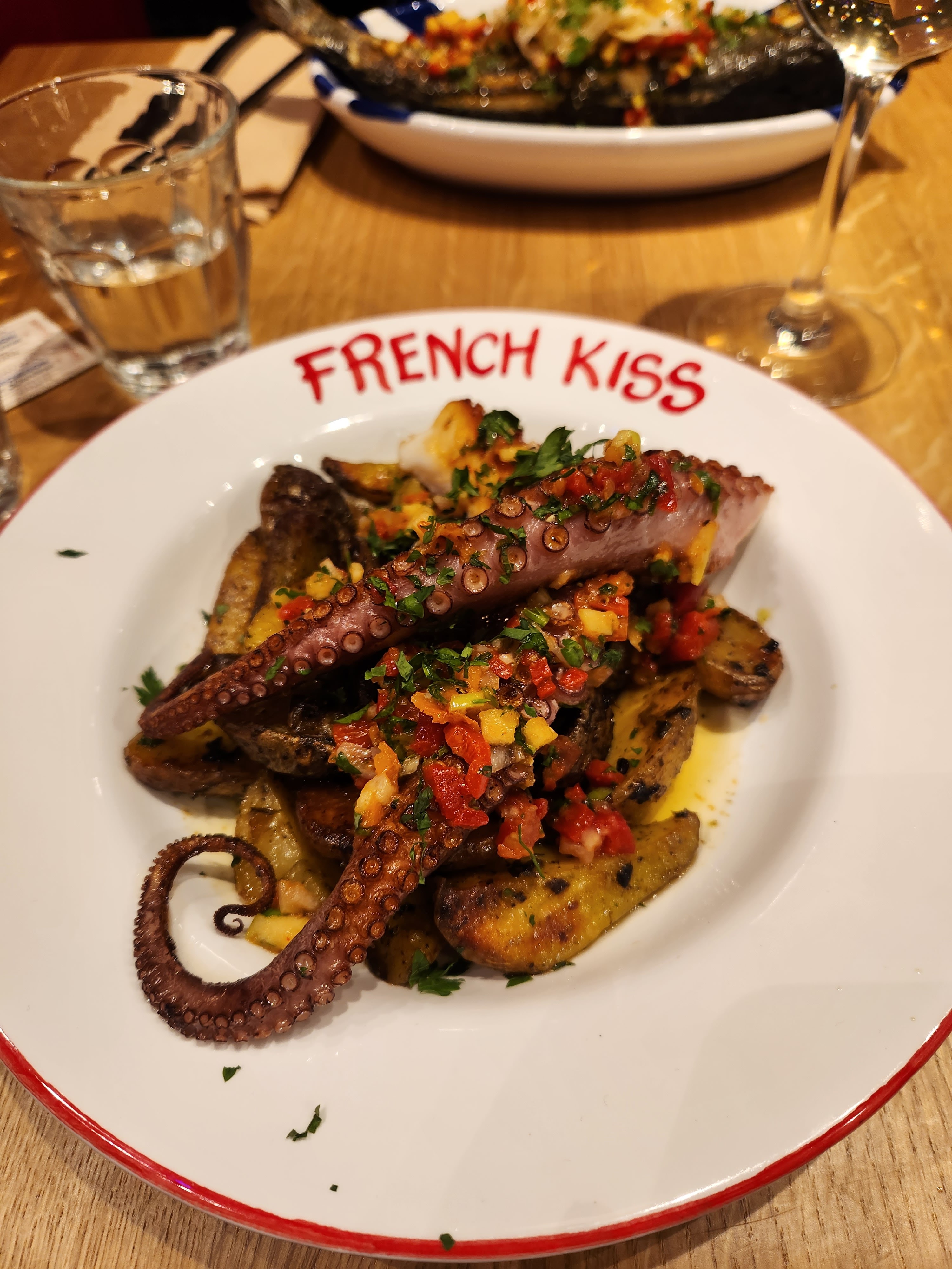 Nous avons passé un agréable moment au French Kiss. Merci à Fardella pour le choix du mojito jasmin qui est vraiment excellent. Je recommande à mon tour. La salade bien consistante et on finit par une tarte aux fraises très bonne.