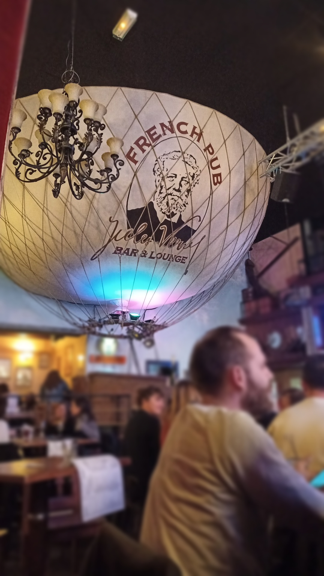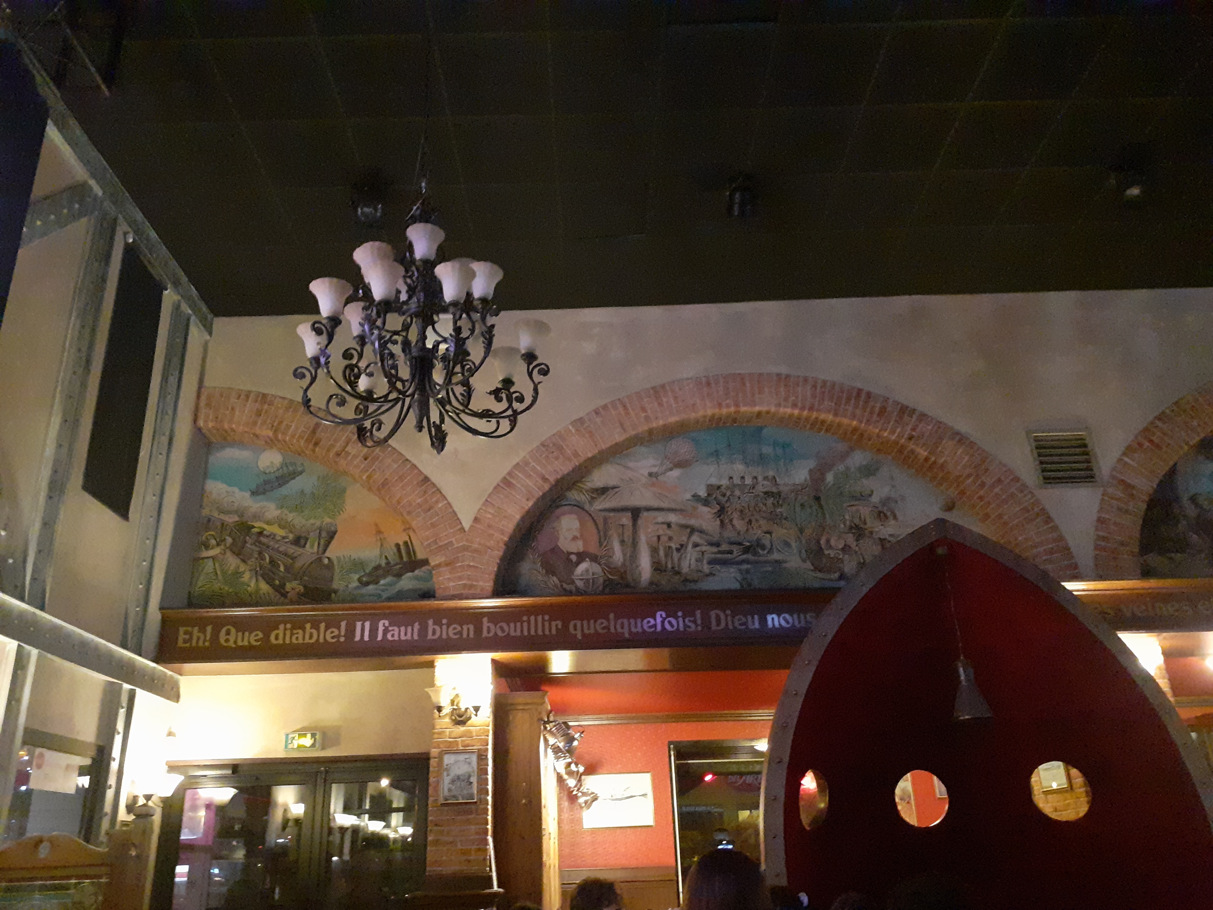 Restaurant très sympa. Décor magnifique : le monde de Jules Verne. Le personnel est très accueillant et très à l'écoute. Le soir ou nous avons dîner au French pub c'était soir de match. Mais même si je ne suis pas foot, ça ne m'a pas gêné du tout les écrans.