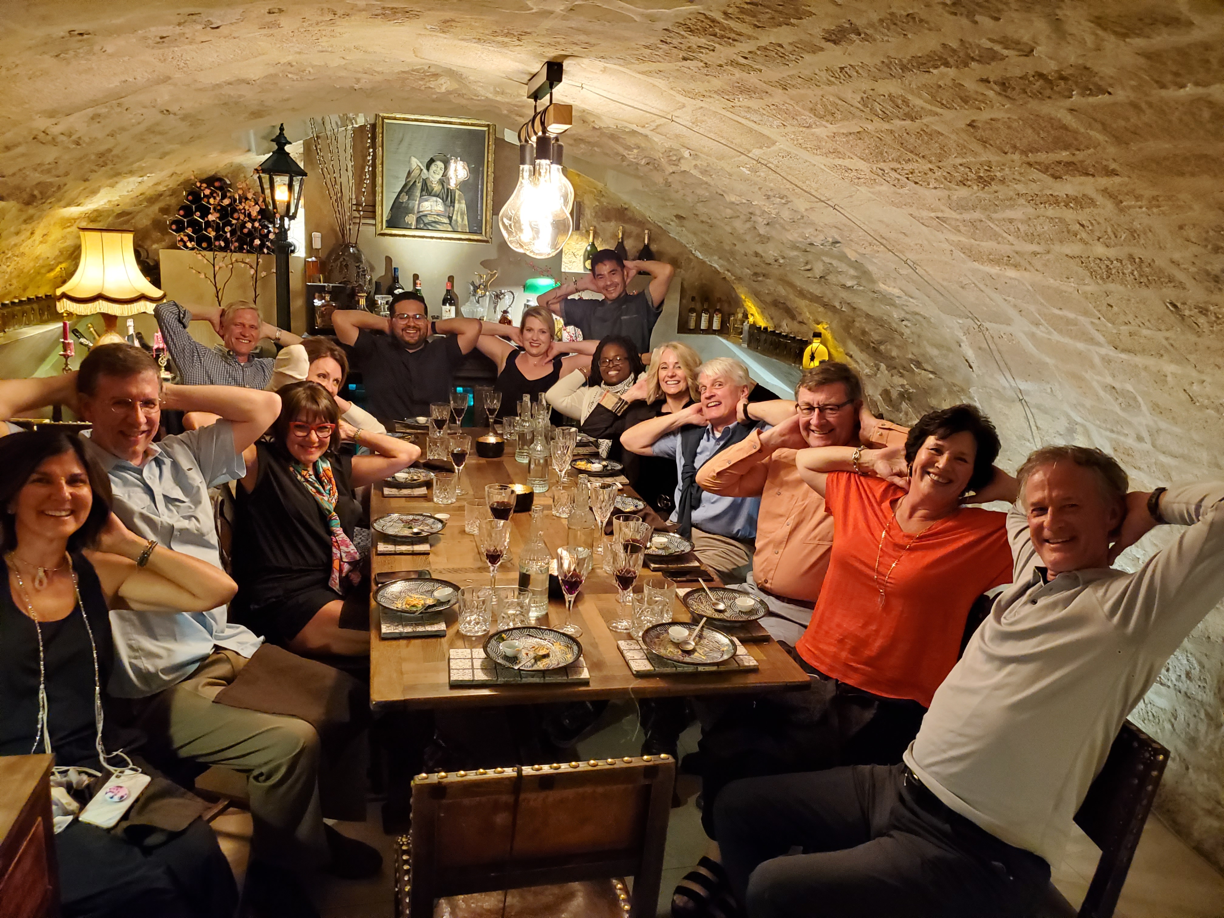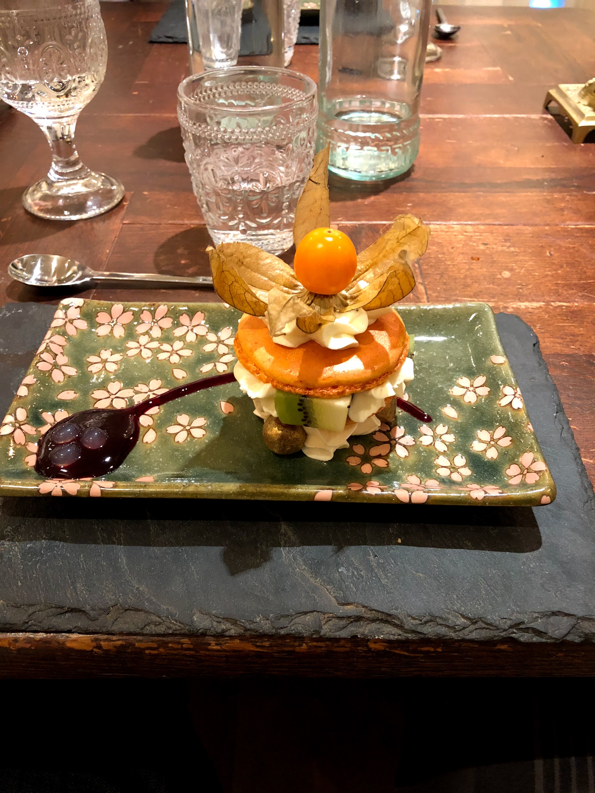 Cachés dans une petite rue de Paris, nous avons été accueillis à la porte par Jean Yves lui-même et son adjoint Fred. Nous avons été emmenés chez nous en bas et sommes allés dans une grotte qui ressemblait à un restaurant. La table était joliment dressée et l’ambiance était immédiatement détendue. Nous avons mangé avec 8 personnes de différentes régions des États-Unis. Nous commençons avec des inconnus, un amour de la nourriture et de la culture, et dans la meilleure atmosphère, nous sommes devenus amis. Jean Yves explique chaque élément de chaque plat et son origine. Il y a des saveurs cachées et de la magie culinaire.