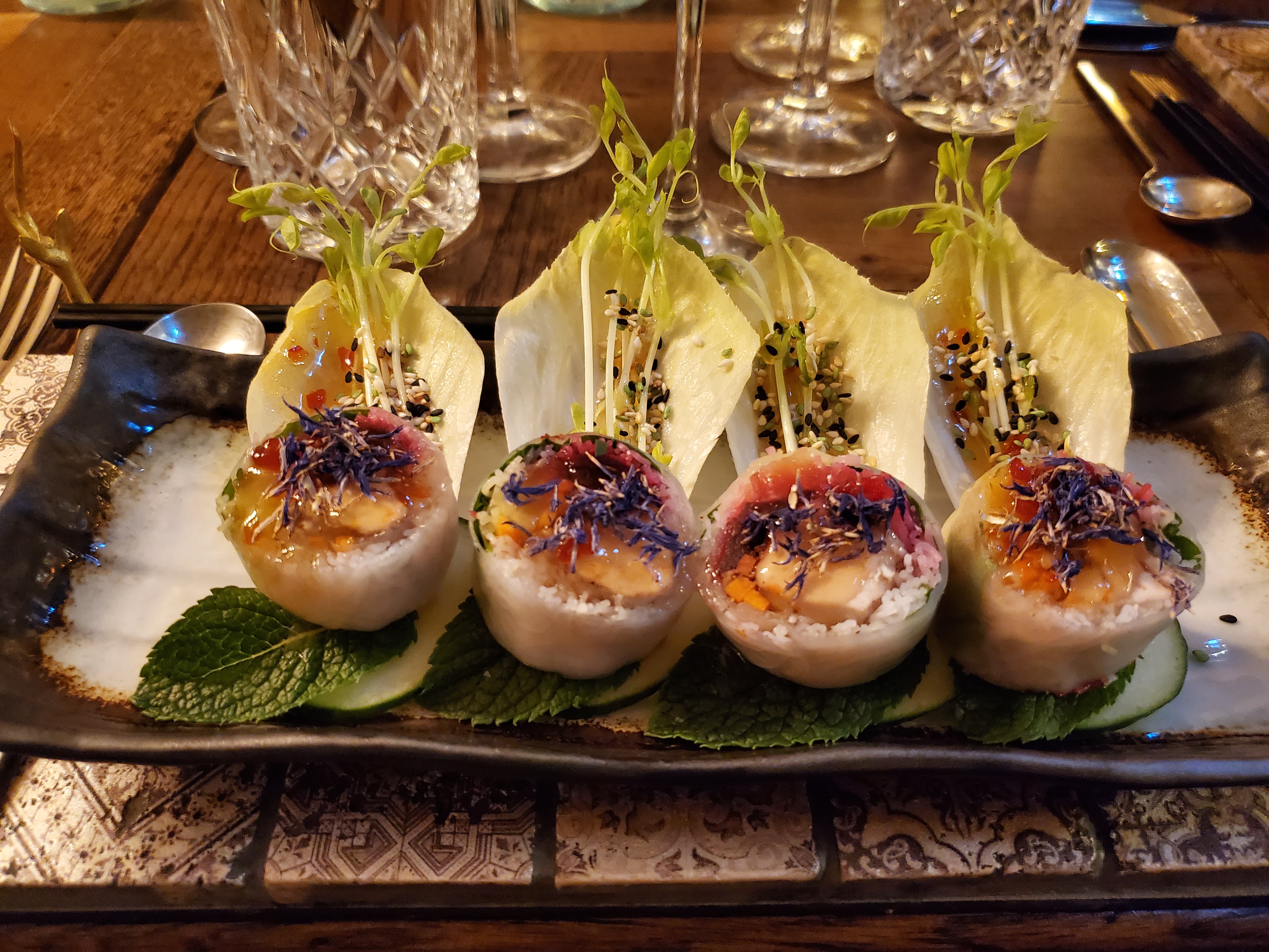 Plus qu'un dîner, c'est une expérience artistique qui vous fait voyager entre la France et les pays d'Asie. Un moment inoubliable, unique en compagnie d'un chef d'exception tant par sa gentillesse et son talent que par son soucis de partager de manière pédagogique sa passion. Vraiment ! Il faut que vous viviez cet instant qui vous fera voyager que que vous ne serez pas prêt d'oublier.
