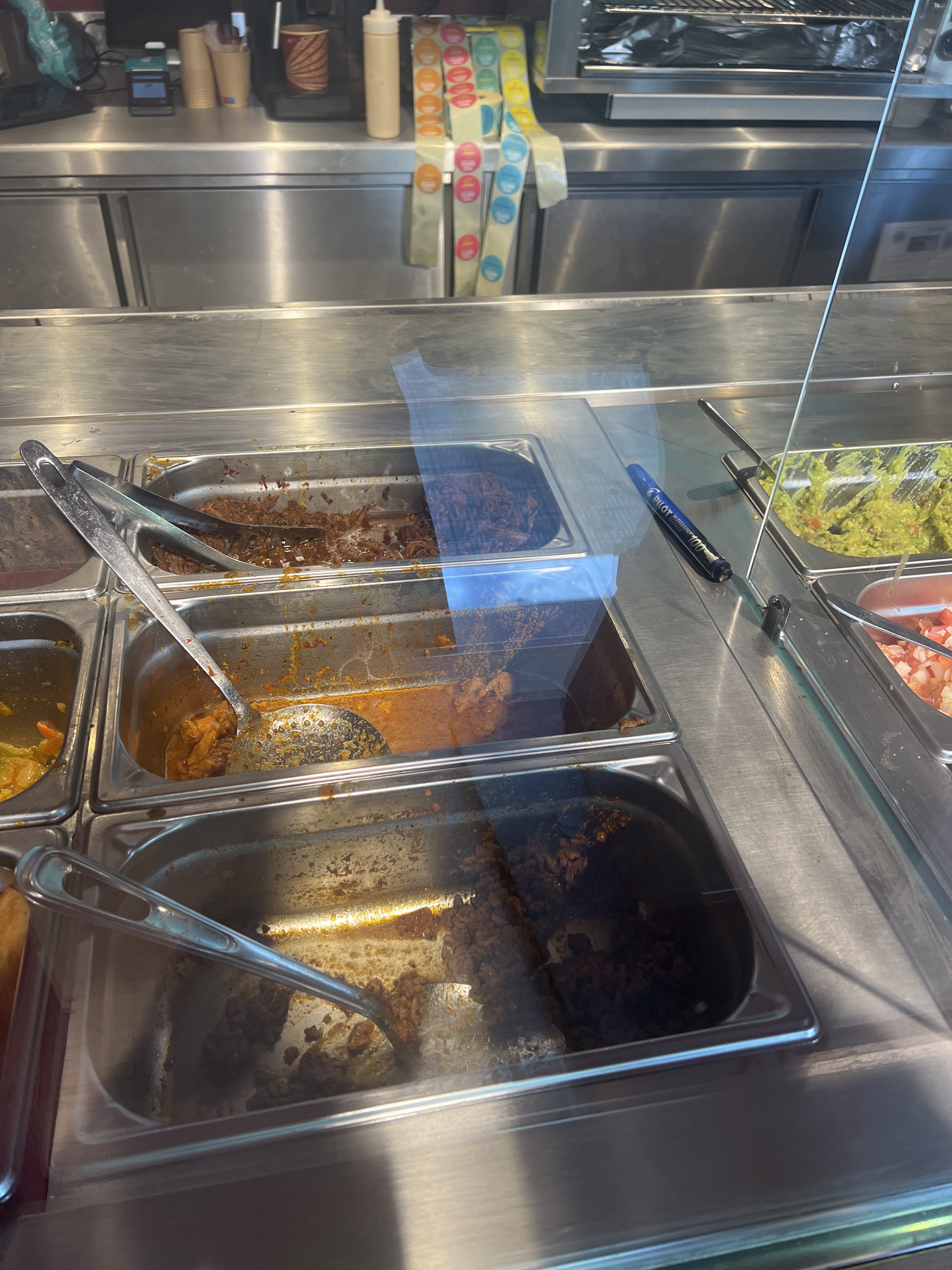 Service un peu long, le burritos bon manque de garniture dans le sandwich surtout quand les bac son vide en met moins dommage .