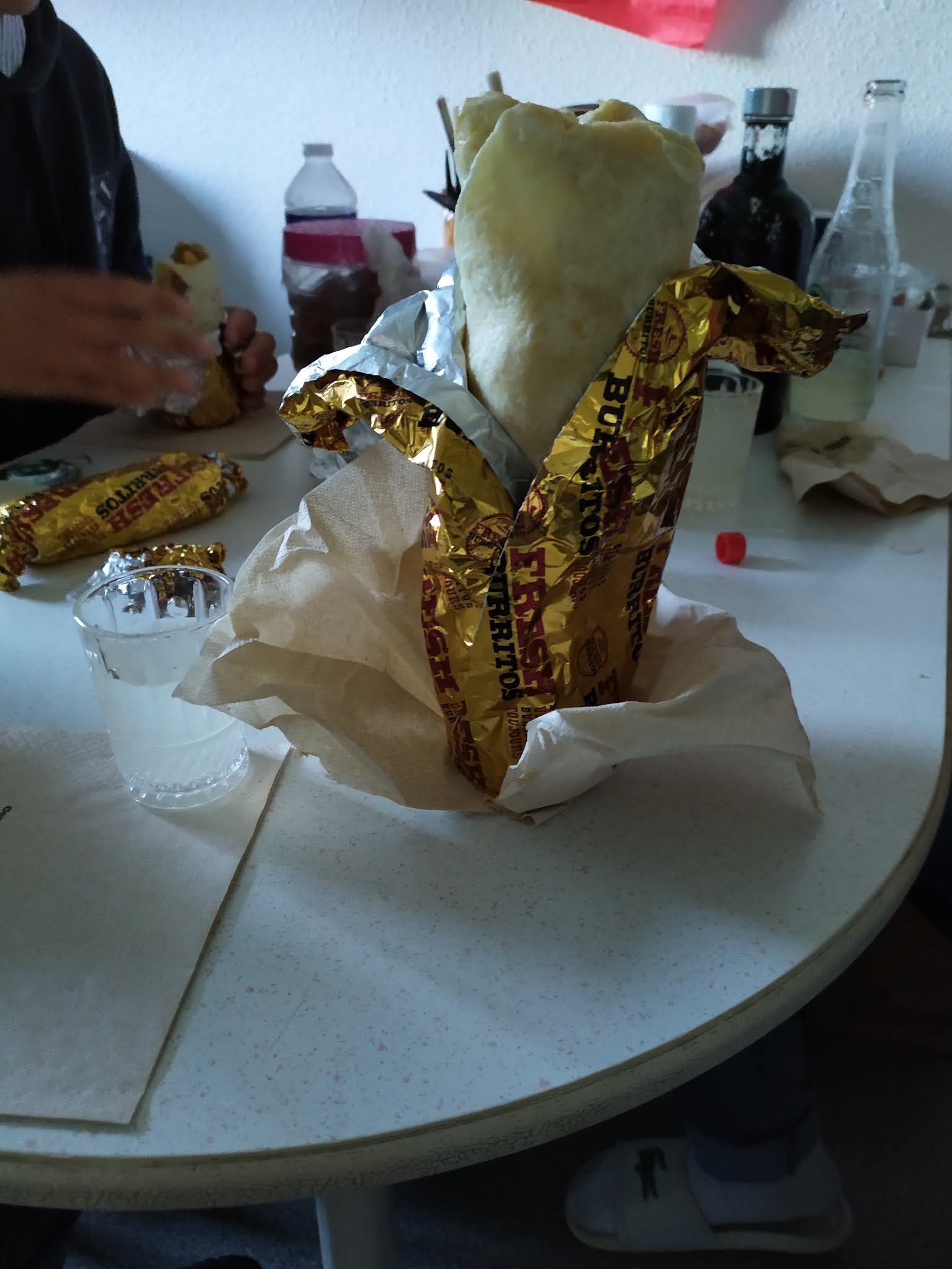 Les burritos sont bons, le personnel est très accueillant ! La sauce cheddar est très bonne, n'hésitez pas à agrandir le stock ! Vivement qu'on puisse manger à l'intérieur sur les balançoires ! :) PS : je vous joints le gros calibre ;)