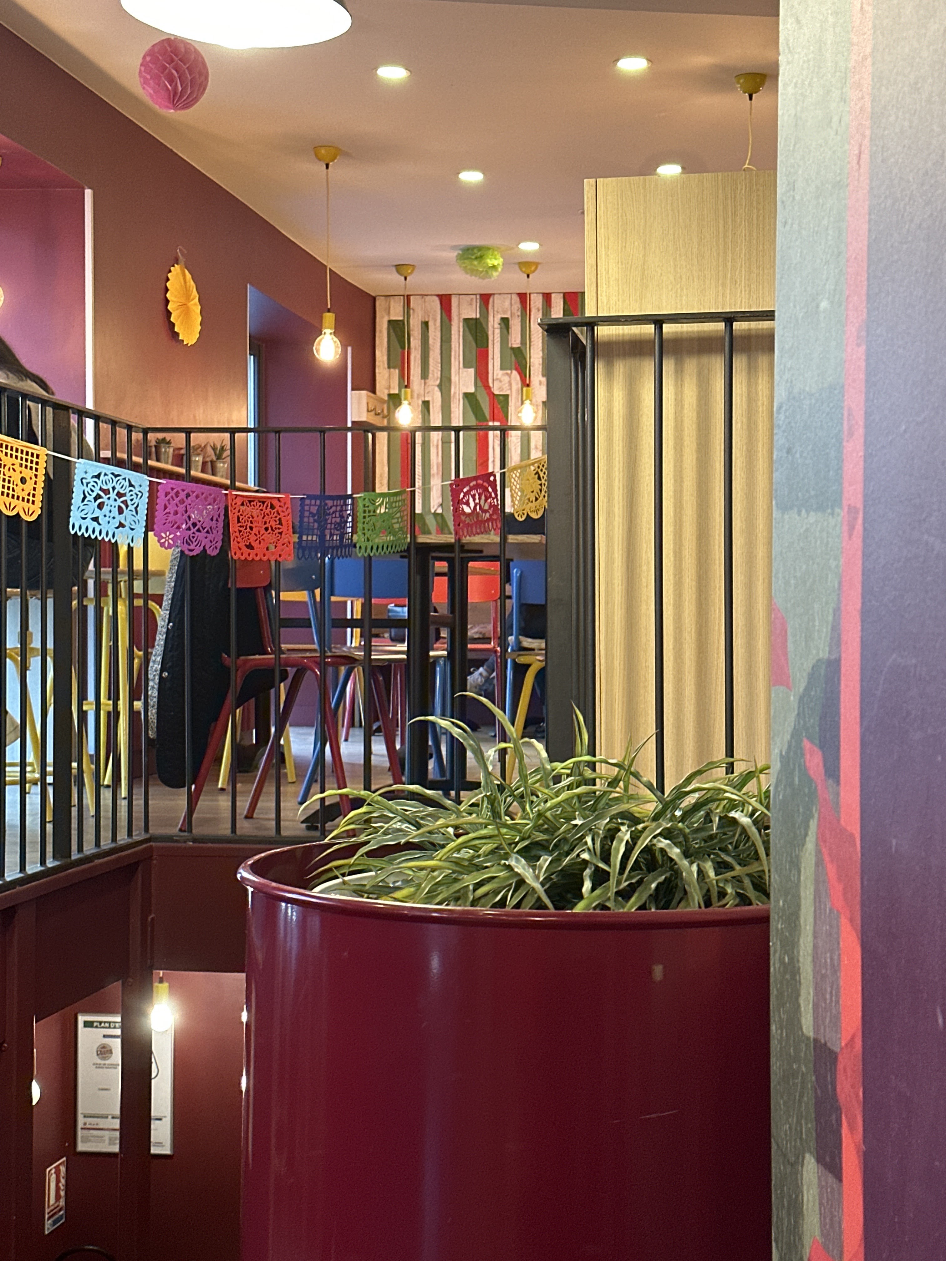 Désirant tester cet établissement avec des produits mexicains, j'ai pu voir que le décor était sympathique et les burritos surtout en XL très complet ( différentes viandes disponibles, légumes,piment, sauce douce ou plus pimentée ). Cependant, j'aurai aimé que celui-ci soit un peu plus chaud car malgré un passage dans un four pendant deux minutes, cela était bien tiède. Mais en le chauffant beaucoup plus, il serait devenu un Chimichanga. L'accès aux toilettes n'est pas possible pour les PMR puisque celles-ci sont à l'étage.