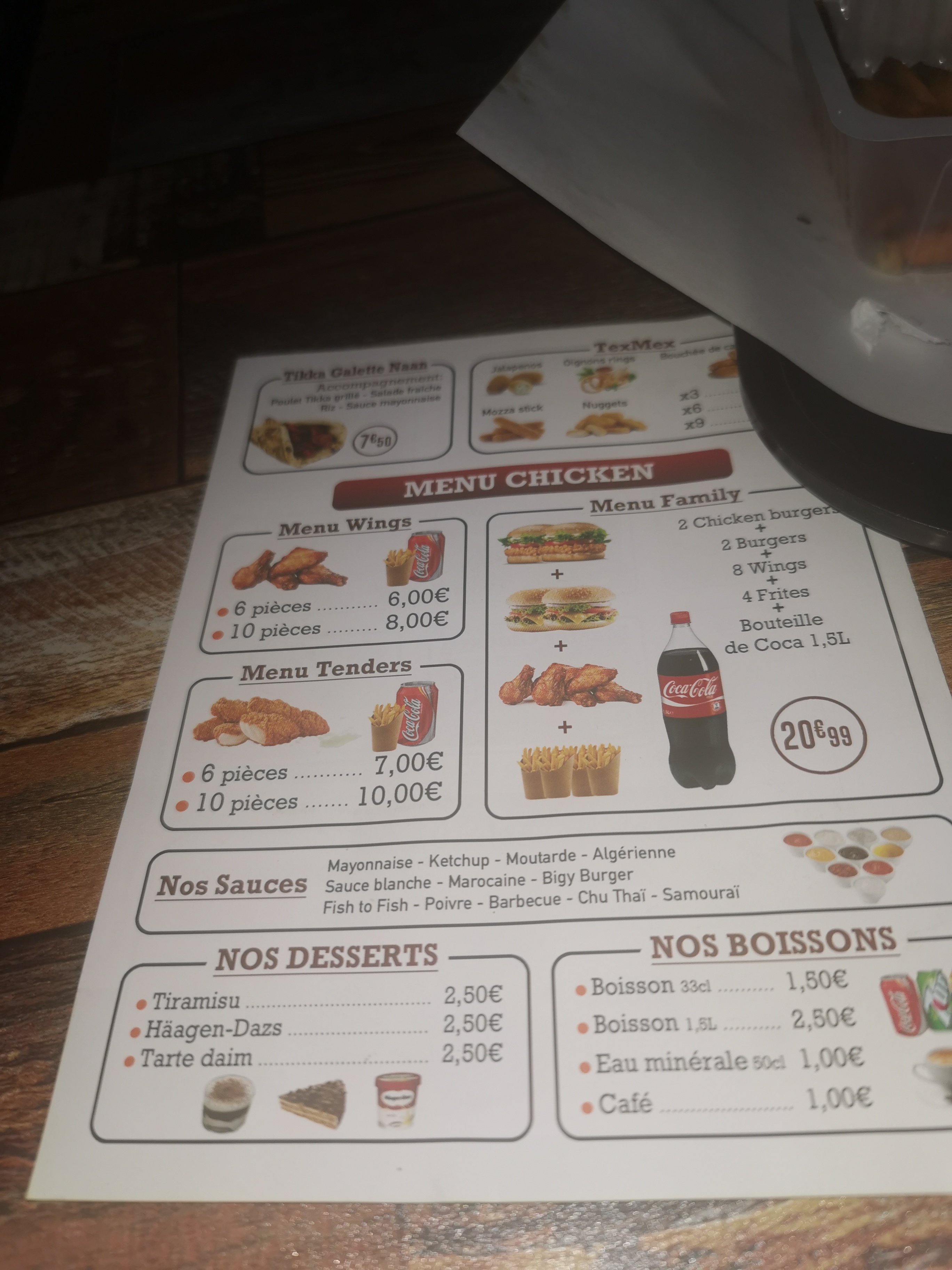 Je suis allé juste pour prendre une barquette de frites et des nuggets pour le prix c'est juste normal et pour le goût ce sont de très bonnes nuggets et de très bonnes frites. Le personnel est aussi généreux avec les portions et les sauces.