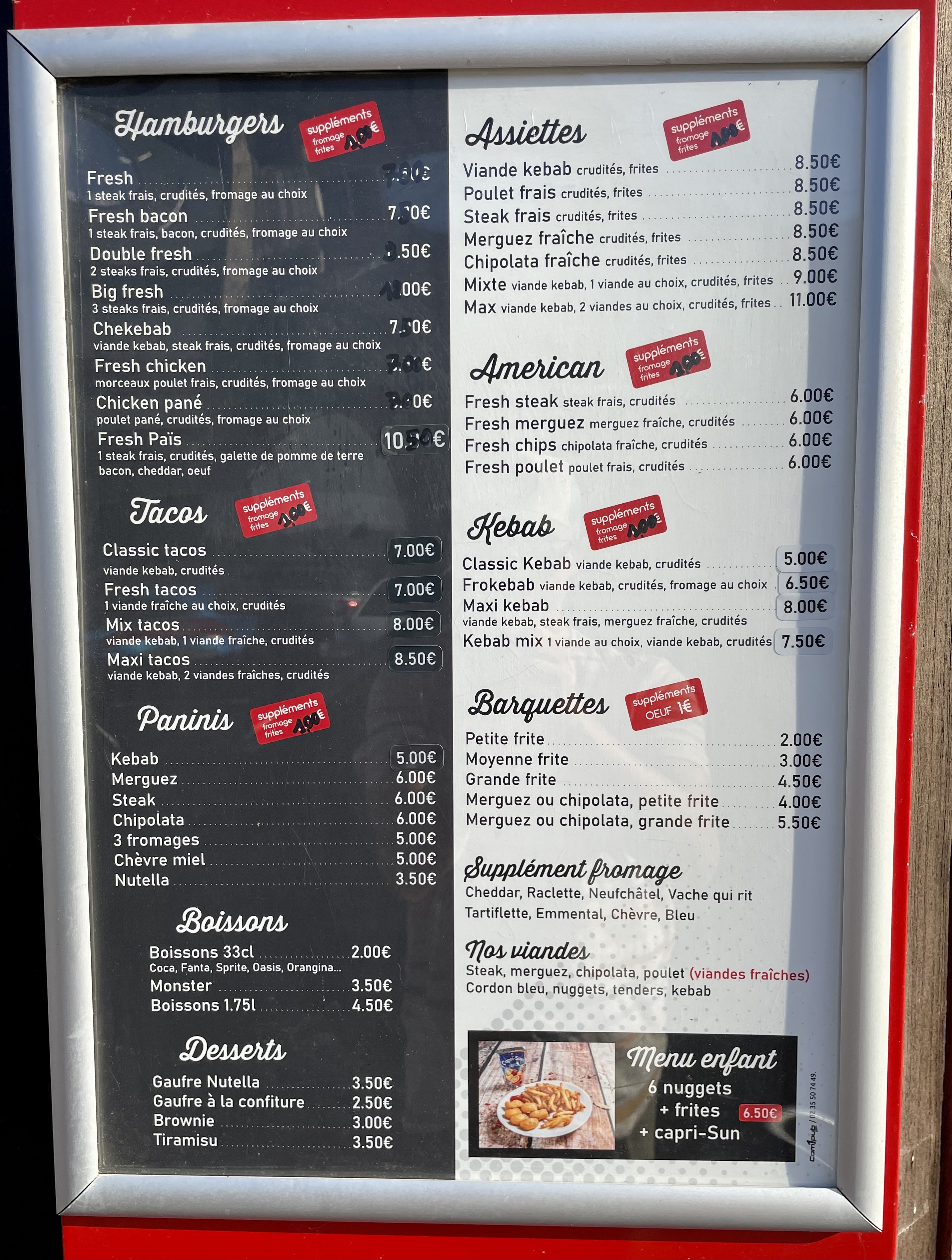 Génialement génial!!!!!!! Viande impeccable et de qualité (kebab ou steack) produits frais, le patron vous met vraiment à l'aise et super sympa !!!!!👍 Une seule erreur de sauce dans 1 kebab sur plus d'une centaines de sandwich commandé chez lui (il reste humain quand même) et surtout qu il fais tous tout seul!!!!! Je ne m'en lasse pas du tout et quand je mange kebab avec ma femme et mes enfants je préfère allez chez fresh food qui est à 26km de chez moi que les 3 autres a proximité de mon domicile !!! A ne pas rater !!!!!!!!!!!!!!👍👍👍👍👍👍👍👍👌👌👌👌👌👌👌👌👌👌👌👌👌👌👌👌👌👌