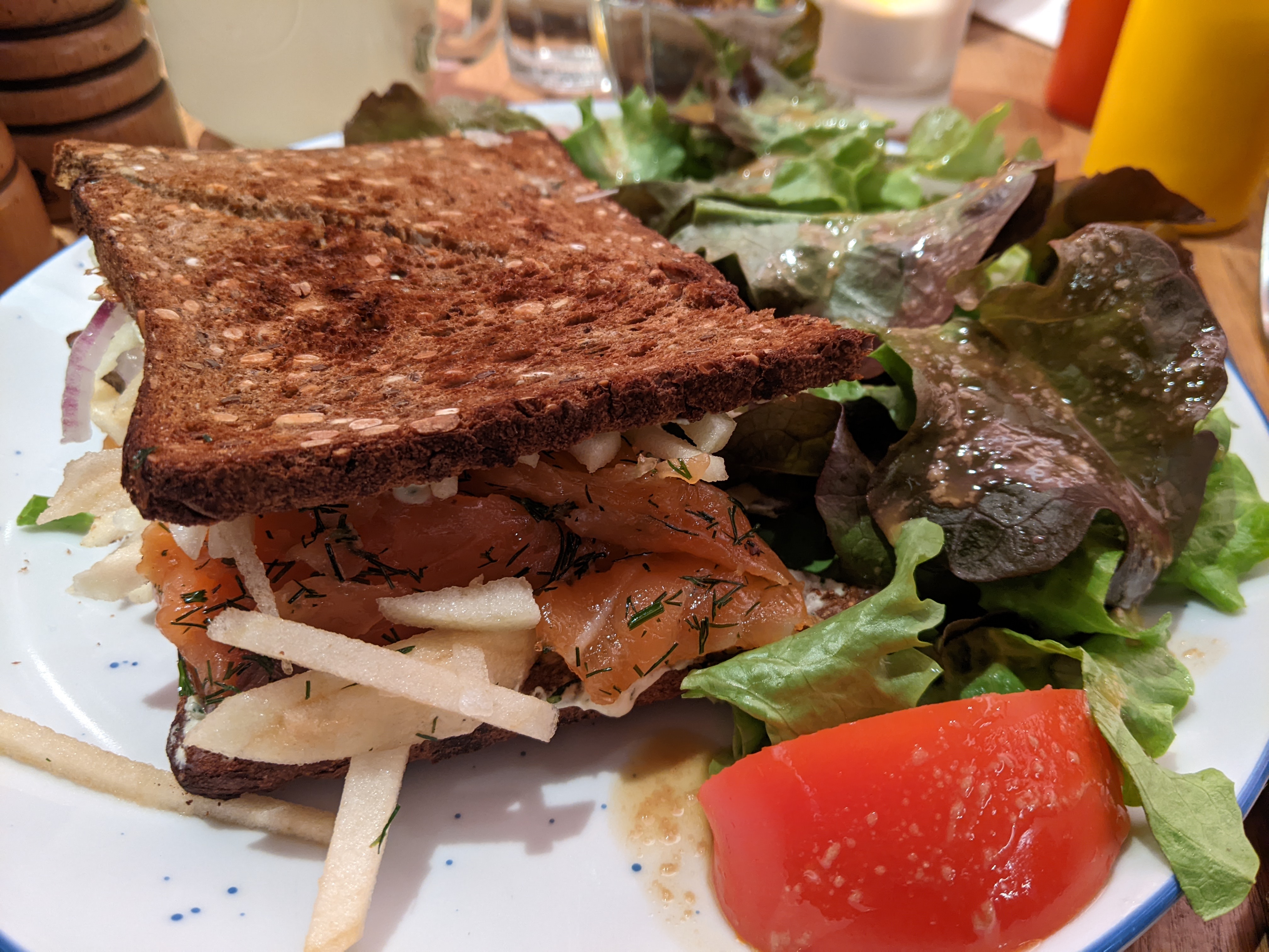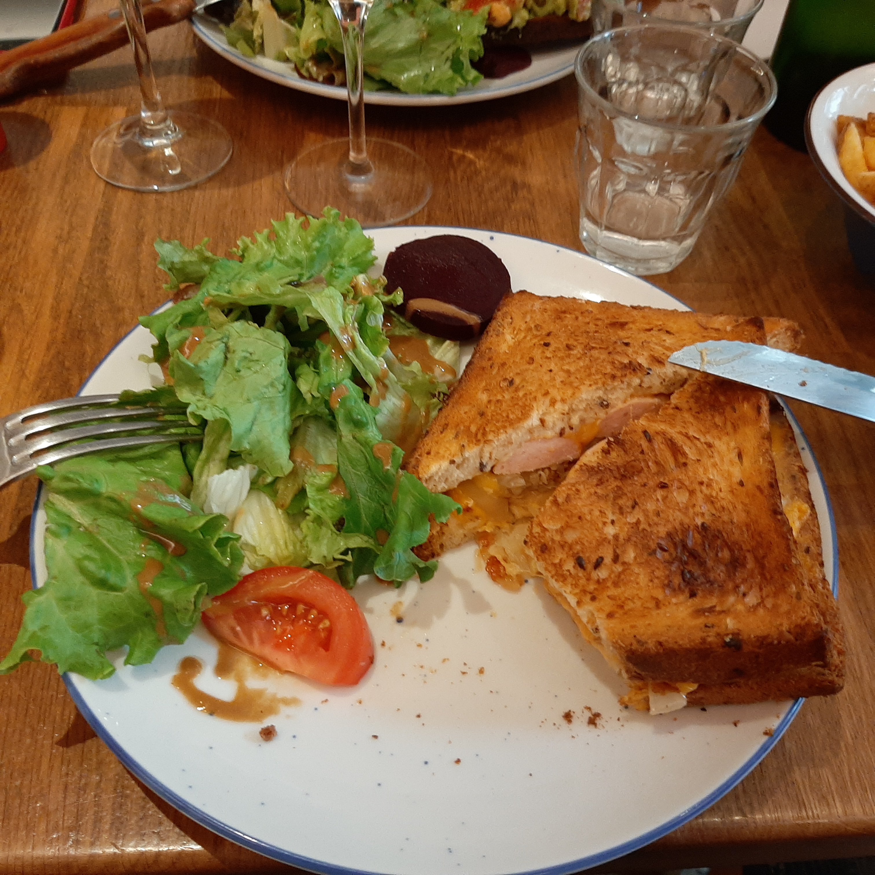 Délicieux croque-monsieurs, produits frais, ambiance chaleureuse et agréable, équipe très sympa, vraiment un super endroit et c'était bon marché, très bon rapport qualité prix. Merci je recommande à fond!