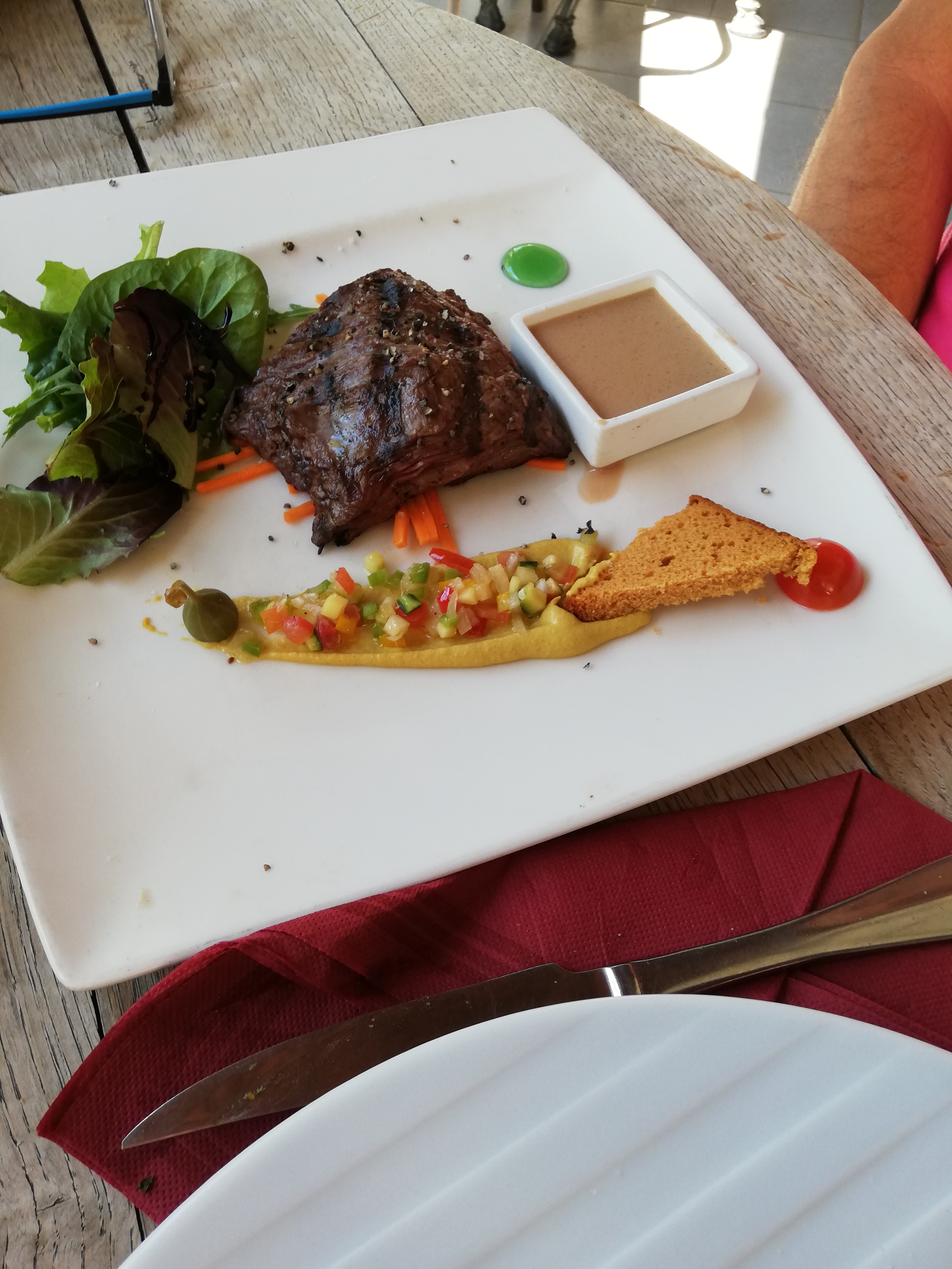 La cuisine est extra ! Le chef est un poète avec ces salades 😀 et la cuisine au feu de bois, tout simplement géniale ! Les cuissons sont justes que ce soit la viande ou le poisson. Je recommande.