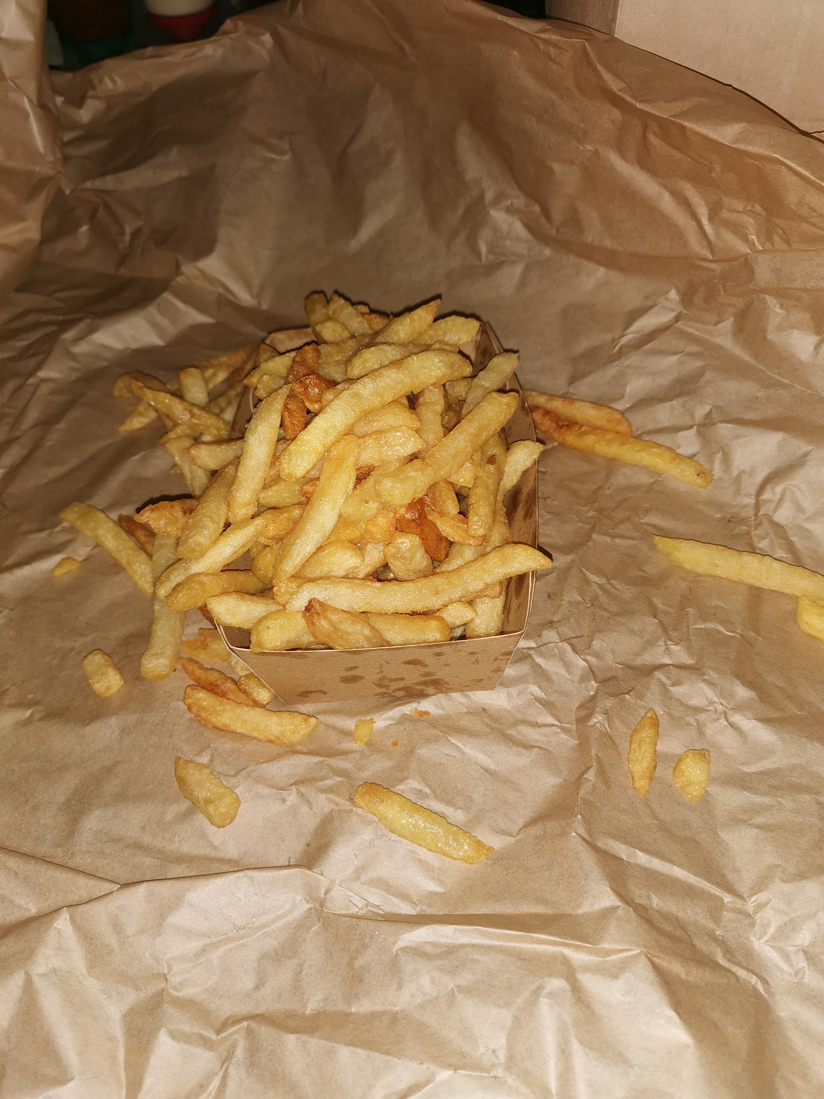 Frites pas cuites, immonde ! J’ai pris un américain merguez qui étais vraiment pas bon, les frites sont recouverte d’huile. De plus, on nous rajouter deux sauces en supplément alors qu’elle n’ont pas était demander lors de la commande, je ne recommande pas du tout, à fuir !!!