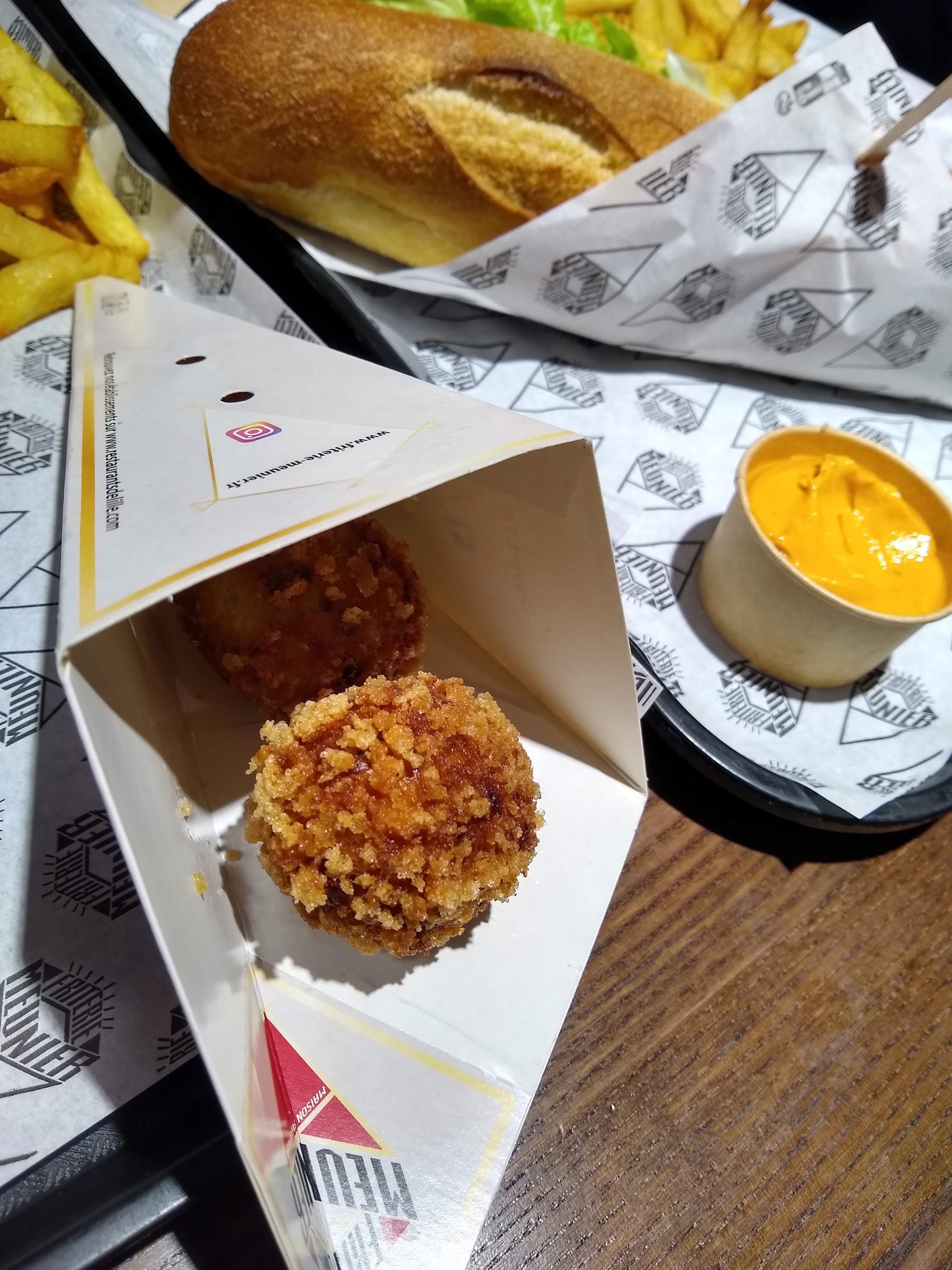 Nous y sommes allés pour goûter. Et parce que c'est une friterie Meunier. Les frites sont toujours aussi bonnes, et les sauces délicieuses. La prise de commande est un tantinet scabreuse d'autant que la personne derrière le comptoir me demande de passer sur une borne au lieu de la passer en live.
