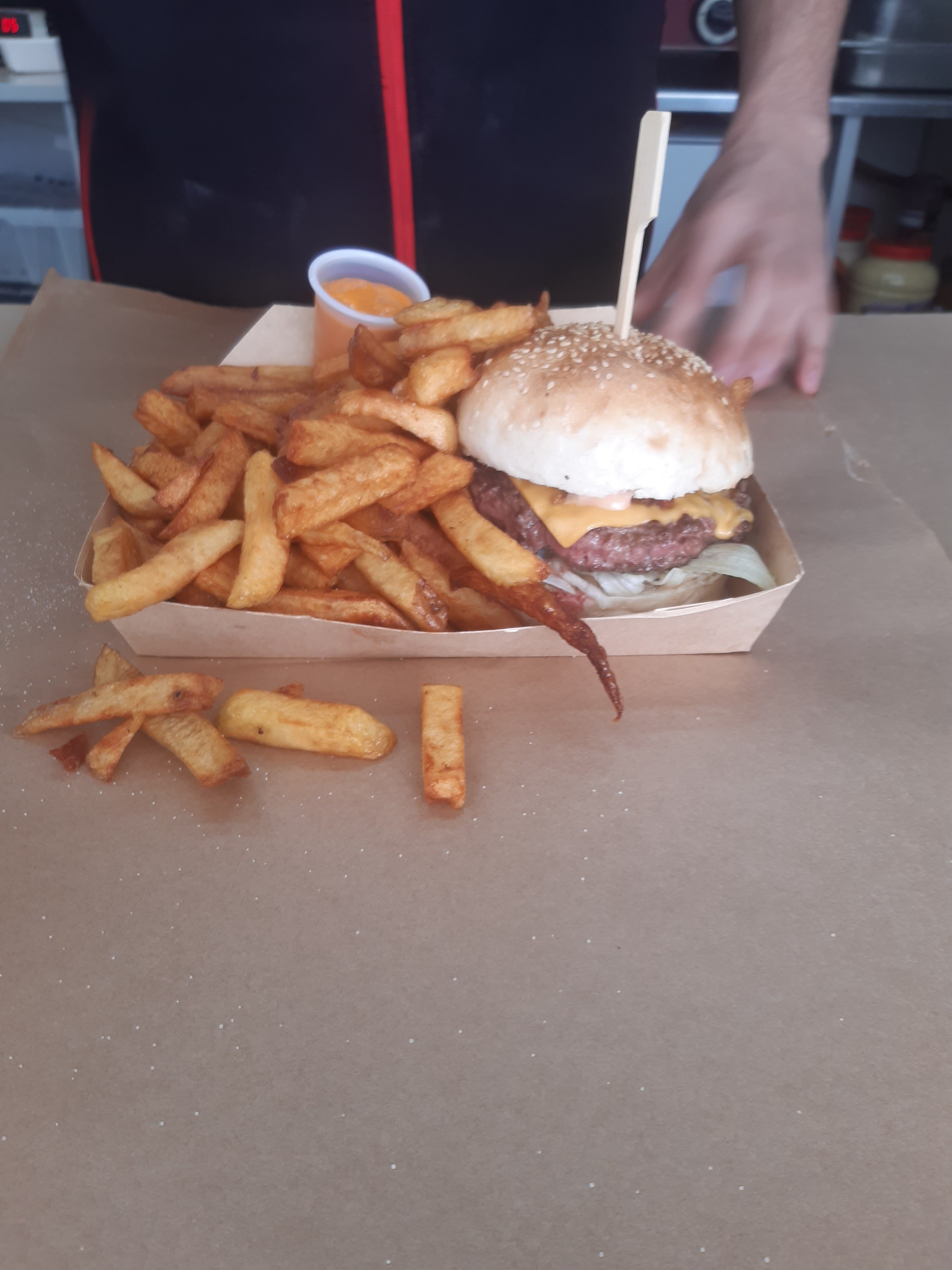 Franchement un régal rarement manger un Burger et des frites aussi bonnes !! La viande cuite saignante parfaitement juste ce quil faut de salade,ca change de ce qui gonfle le burger avec 3 kilo de salade les frites on en parle pas il faut juste aller les gouter . La grande classe Bravo .