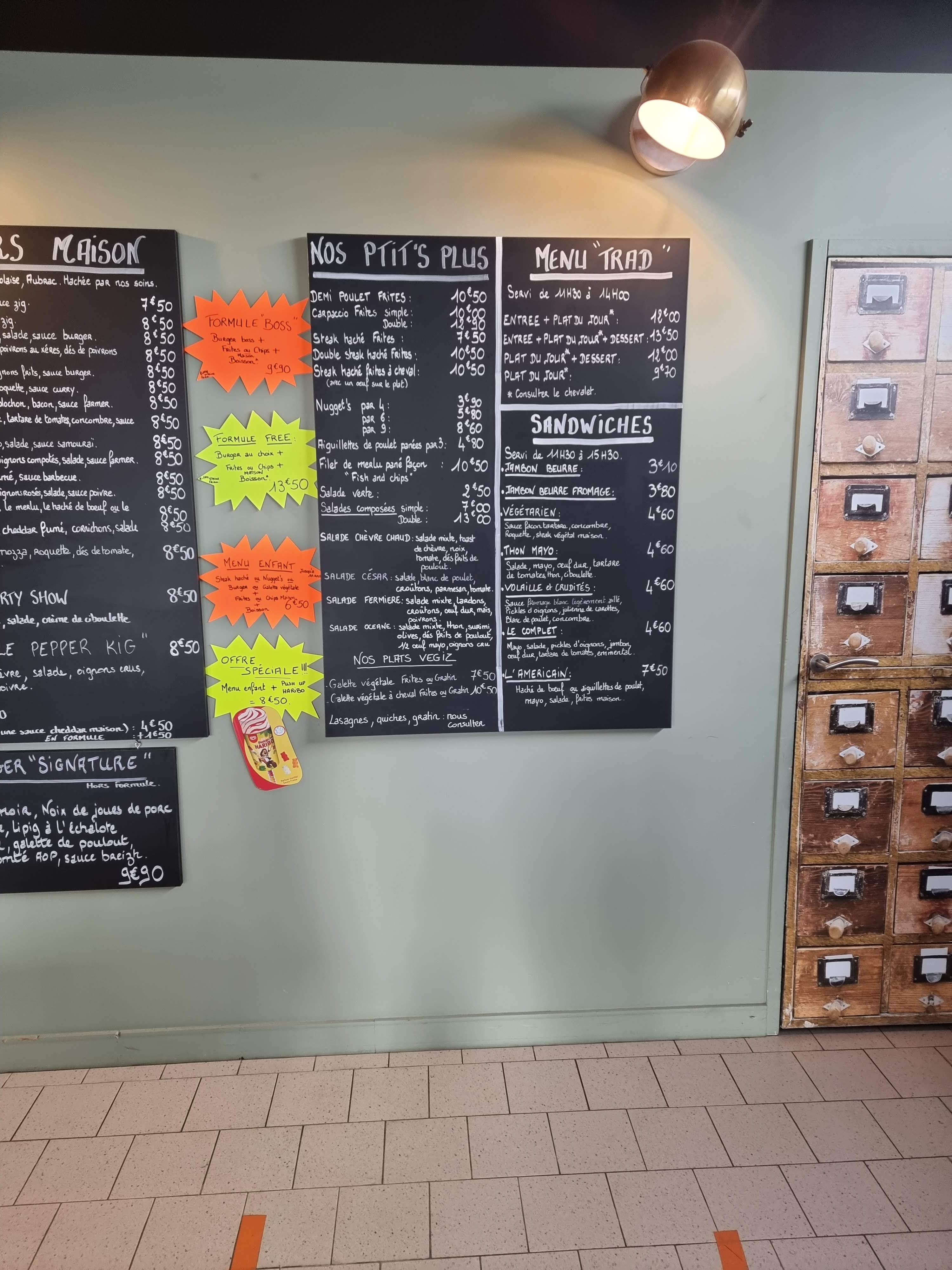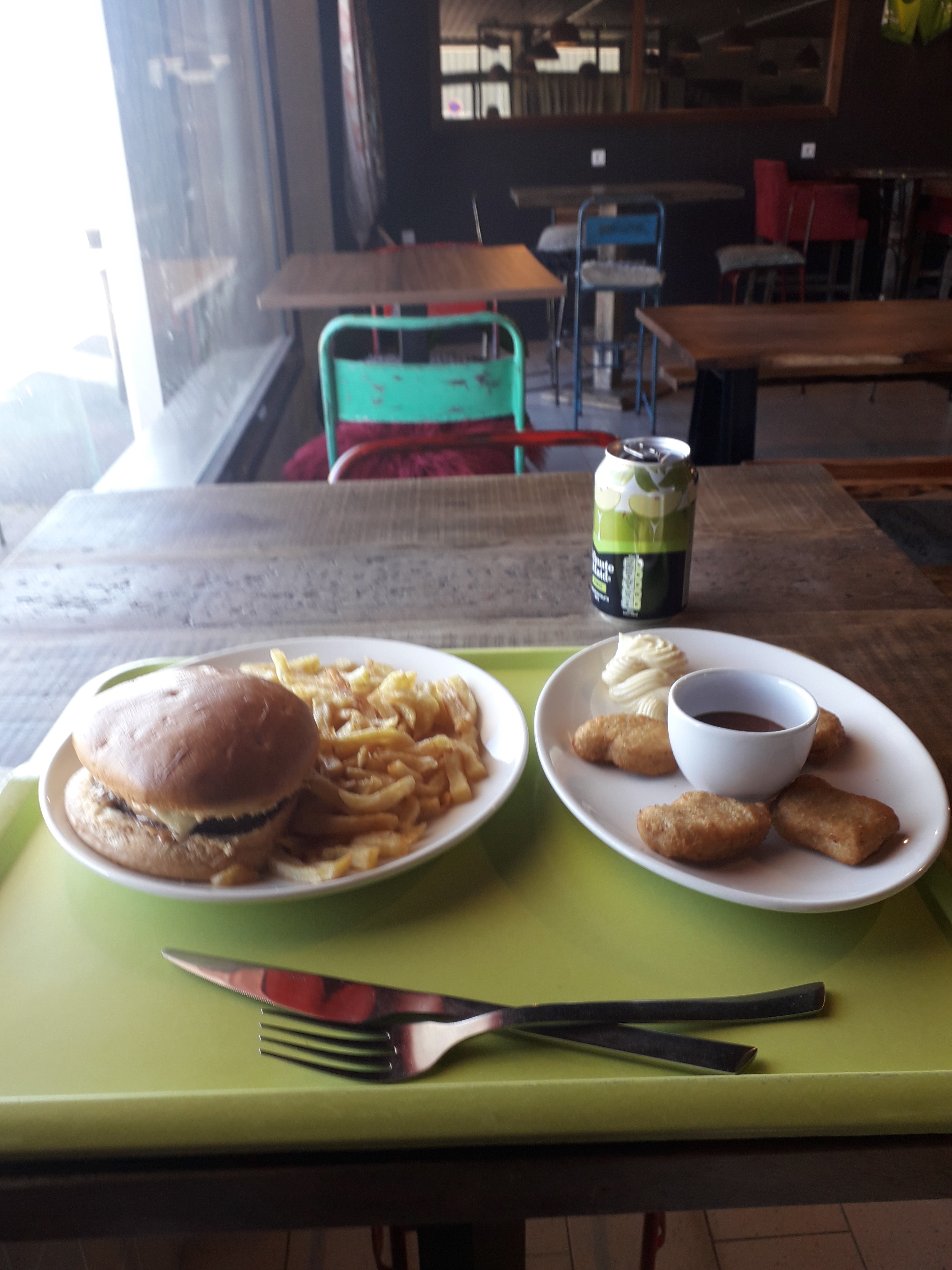 Bonne découverte! Le choix entre menu du jour. Buffet. Burgers salades et autres plats. Du fait maison avec de bon produits même les sauces. Justes les nuggets sont industriel. Mais c'est parceque les enfants aimés mieux. Je recommande ce restau.