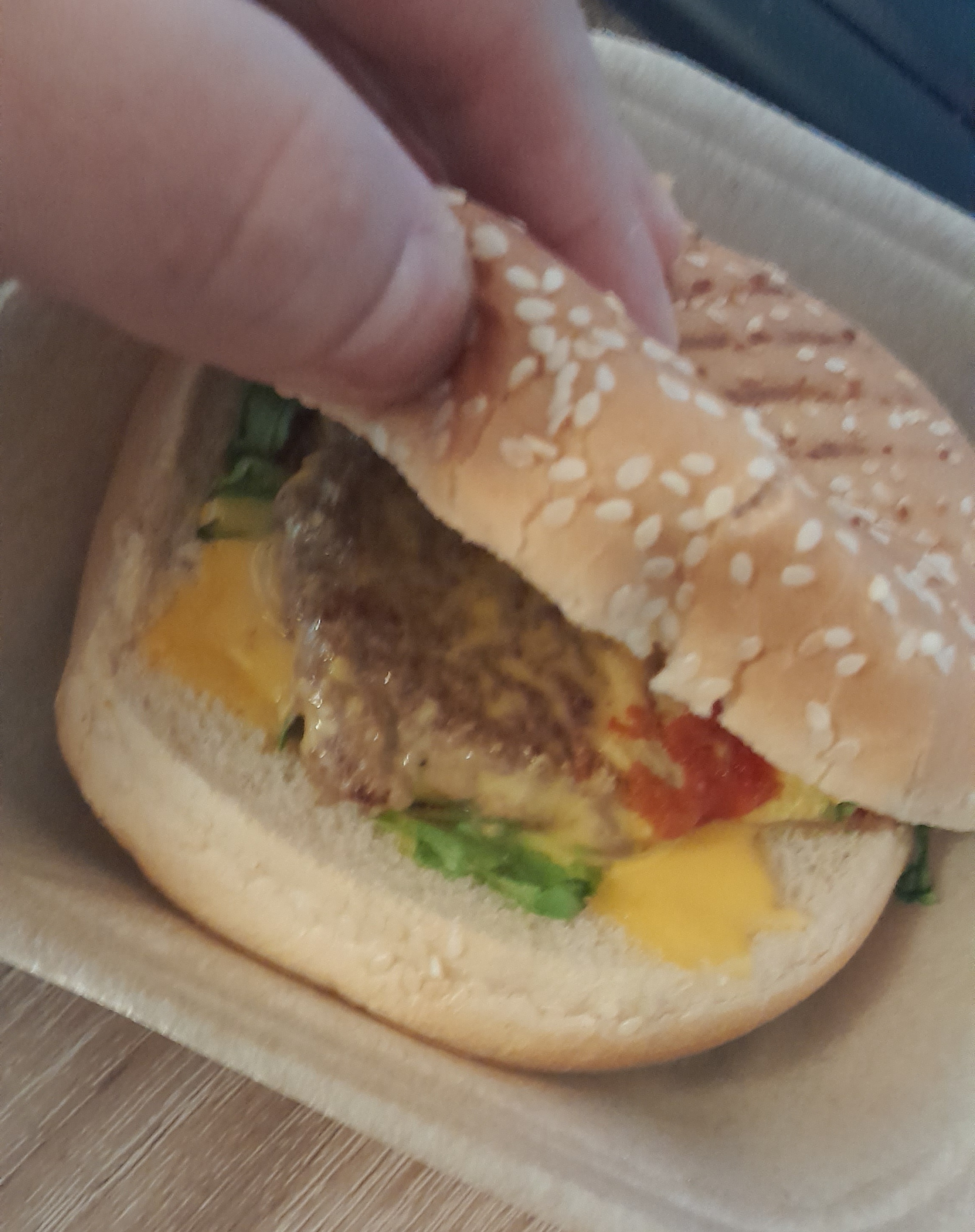 Rien a mangé dans le burger. Et comme les commentaires précédents : les frites maison pire que McDo et pas de chance pas de CB 🤣.