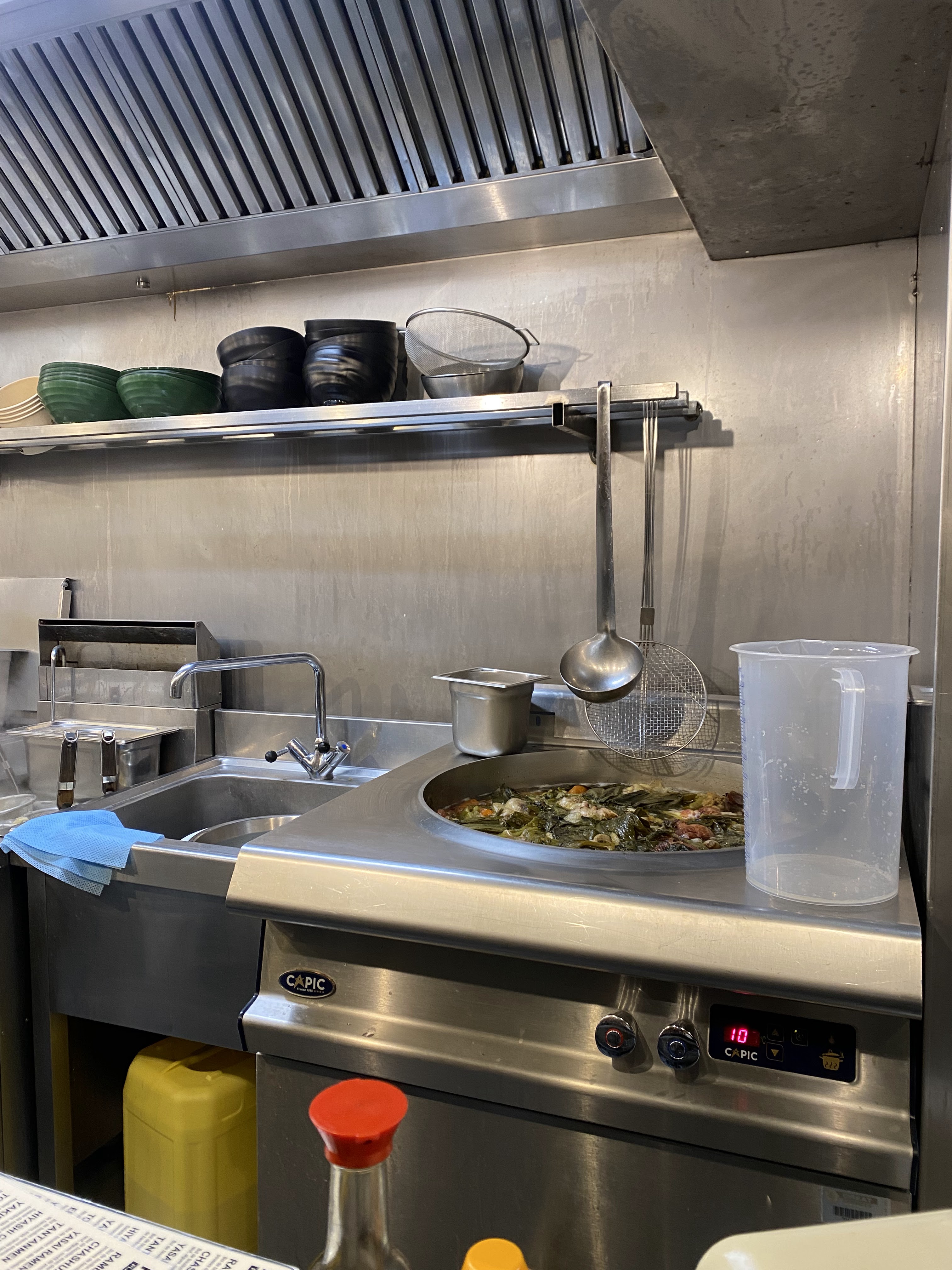 Sympa car ouvert en continu, c'est bien pratique en fin d'après midi. Le bouillon est pas mal et l'expérience est agréable même si on est assis sur des tabourets pas très confortables