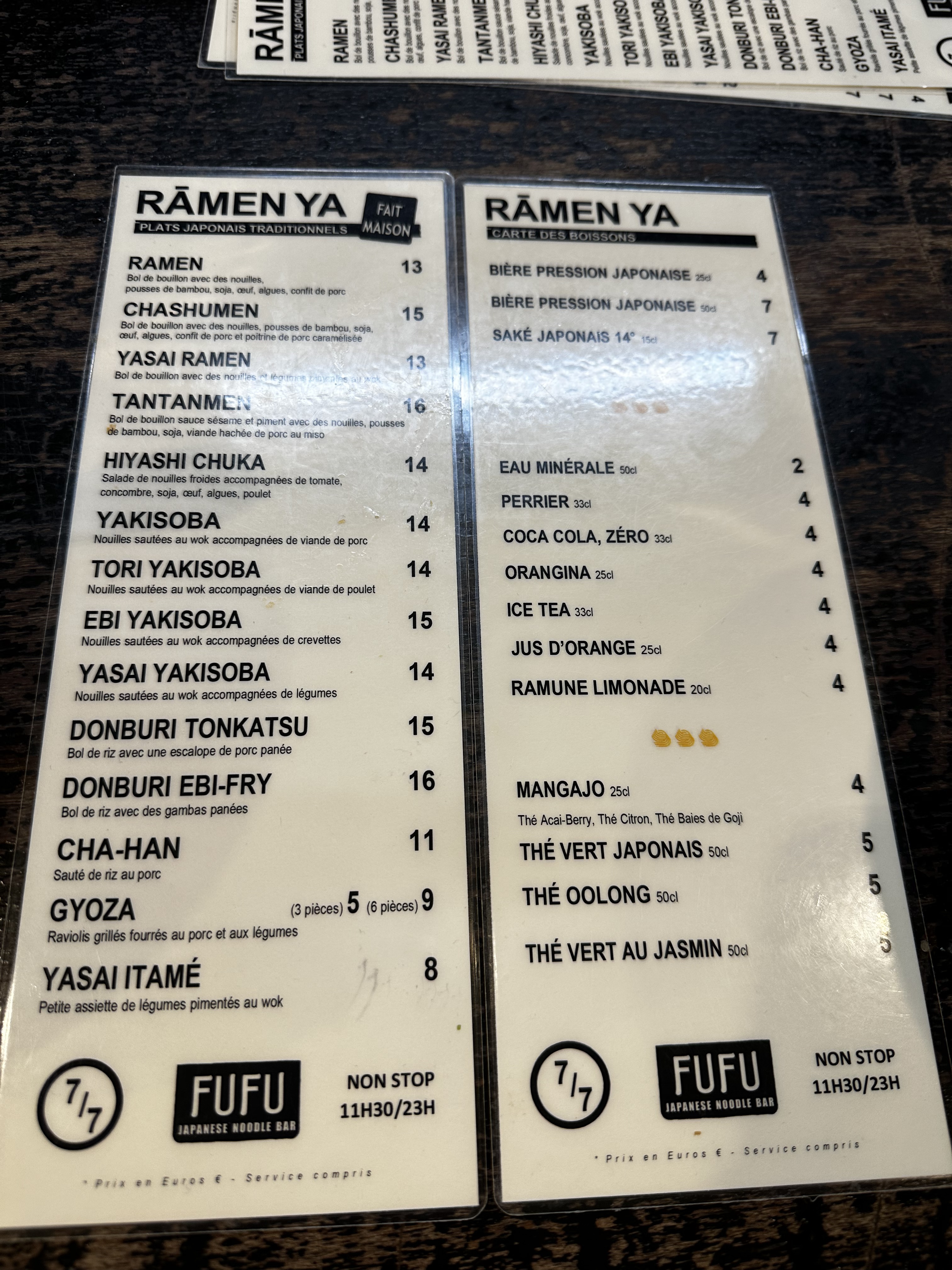 Nous avions décidé de nous arrêter au Fufu Ramen où il y a toujours du monde à l’intérieur (ce qui est généralement bon signe). Nous n’avons pas été déçus. Nous sommes directement embarqués au Japon. L’expérience est top ! On peut soit s’asseoir au comptoir tous côte à côte, soit sur des tables de 2 côté mur. Je vous conseille le comptoir, le plat est préparé en direct, c’est très intéressant à regarder. Rien à dire sur l’hygiène, personne ne touche d’aliments avec les doigts, la cuisine est propre et régulièrement nettoyée, ce qui est plutôt rassurant. La nourriture est délicieuse, abordable et très généreuse. C’était vraiment réconfortant ! Je reviendrai pour l’expérience et la nourriture. :)