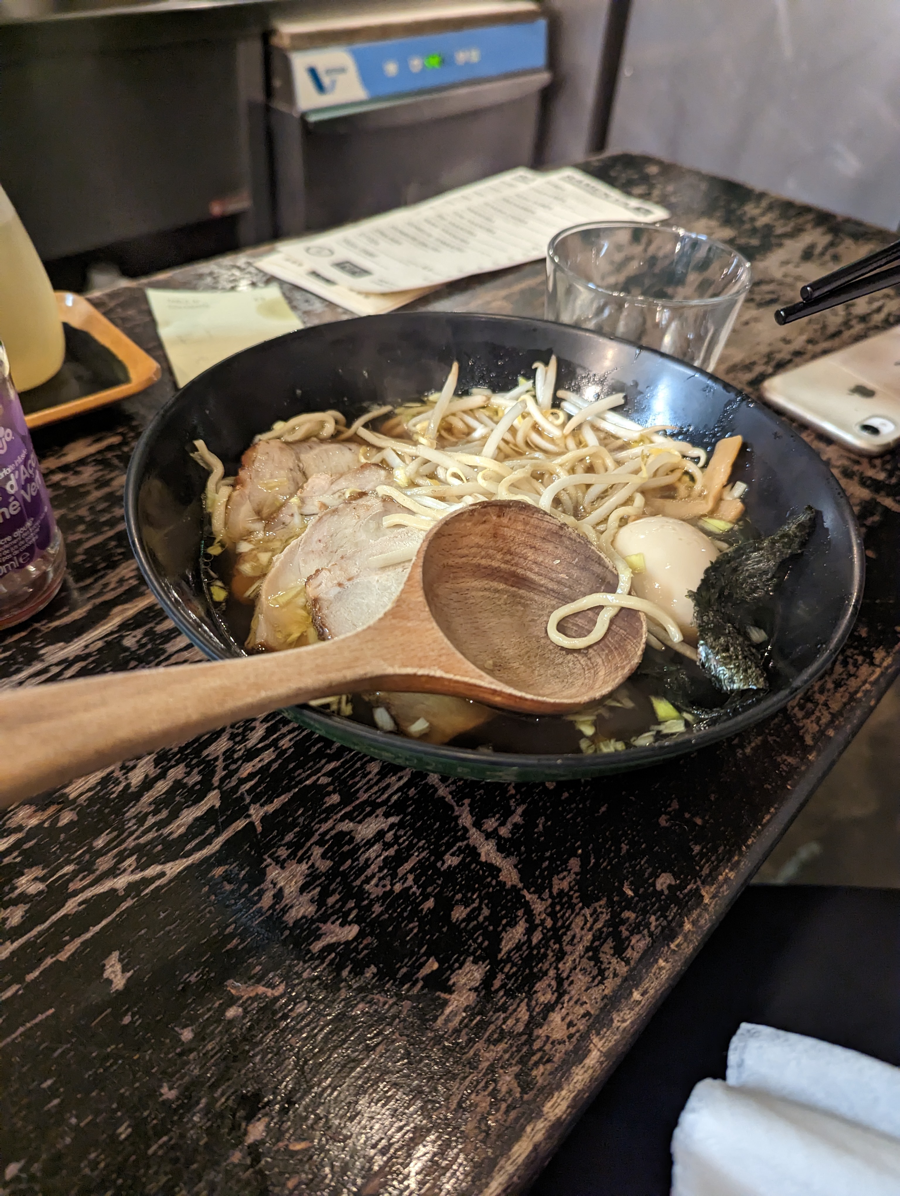 Restaurant de ramen manuel et comme il devrait être ! Le personnel est rapide et sympathique, il n'est pas trop à l'étroit mais vous vous côtoyez un peu, ce qui vous donne l'impression d'être au Japon en train de manger des ramen. Complet avec les toilettes presque cachées à l'arrière, devant la machine à glaçons et les installations de lavage. J'espère qu'ils feront à nouveau fonctionner les toilettes japonaises, cela rendrait l'expérience complète.
