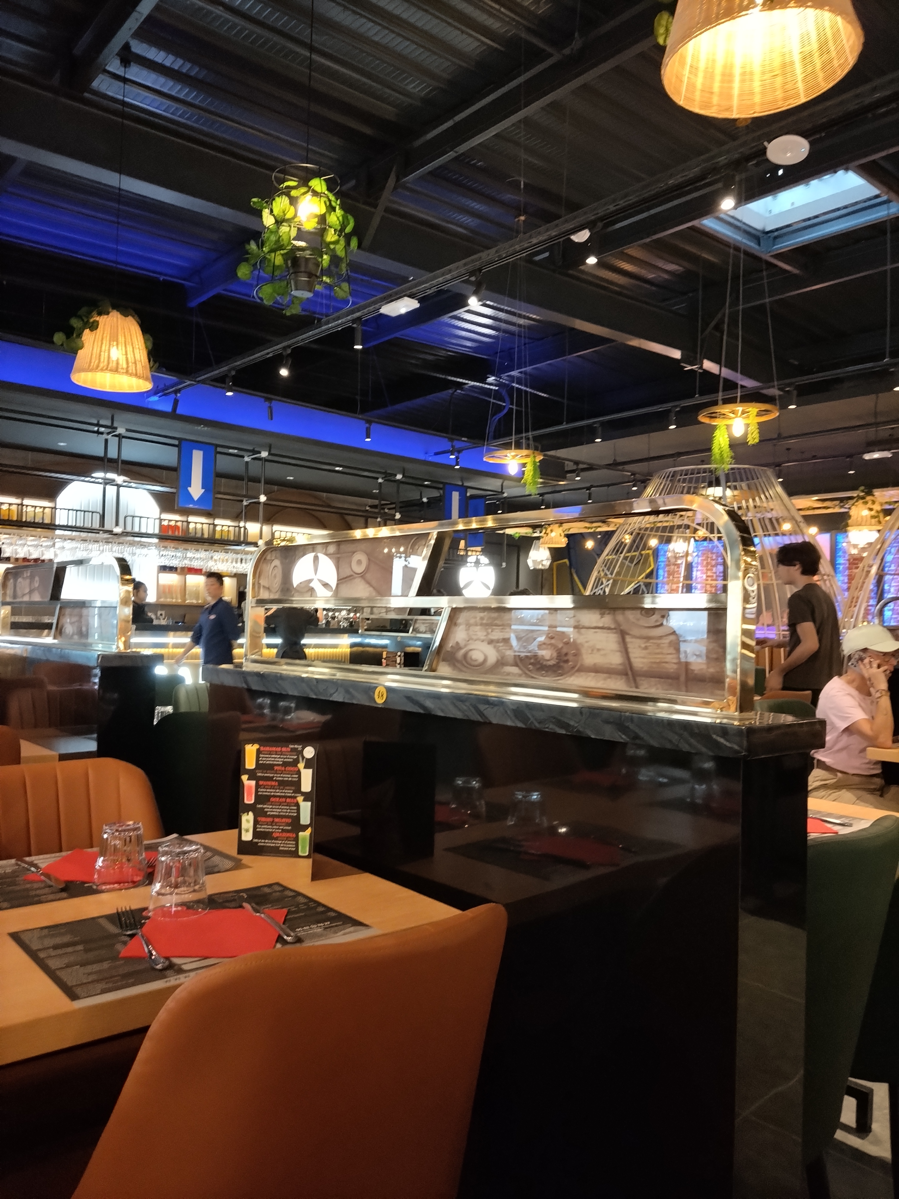 Restaurant à volonté au dessus de la moyenne avec un choix plus important. Enfin des perles de coco en dessert. Les enfants sont enchantés avec un grand choix de bonbons. L'accueil est très bien avec une mention particulière pour le robot. Une aire de jeu pour amuser les enfants sympathique. Très belle décoration jusqu'aux toilettes. Un bon moment en famille