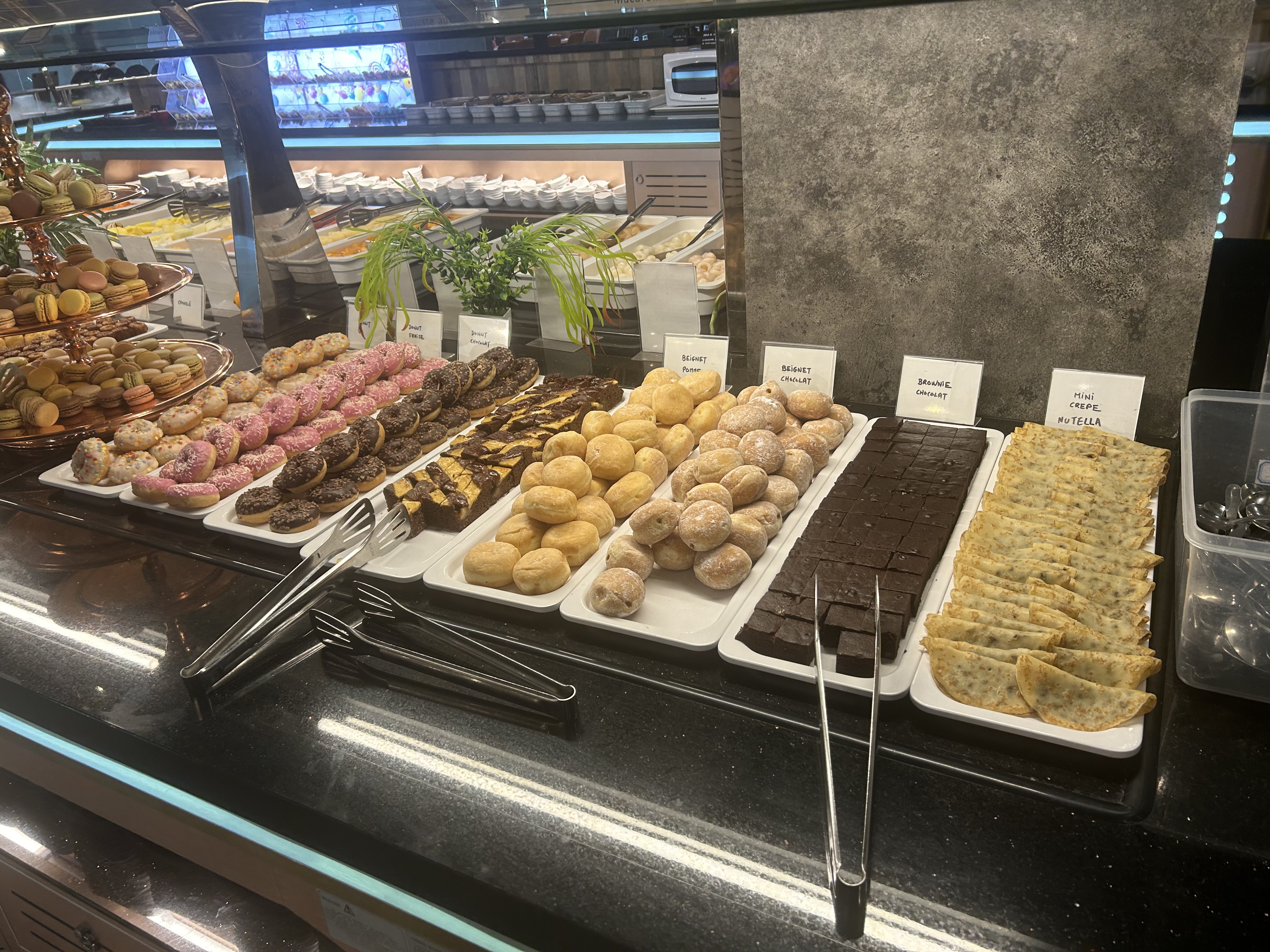 Très beau cadre. Énormément de choix. Il y en a pour tous les goûts. Les buffets sont jamais vides. Seul petit bémol comme les assiettes sont froides les vapeurs,news sont froids quand on les mange Mais je recommande sans soucis