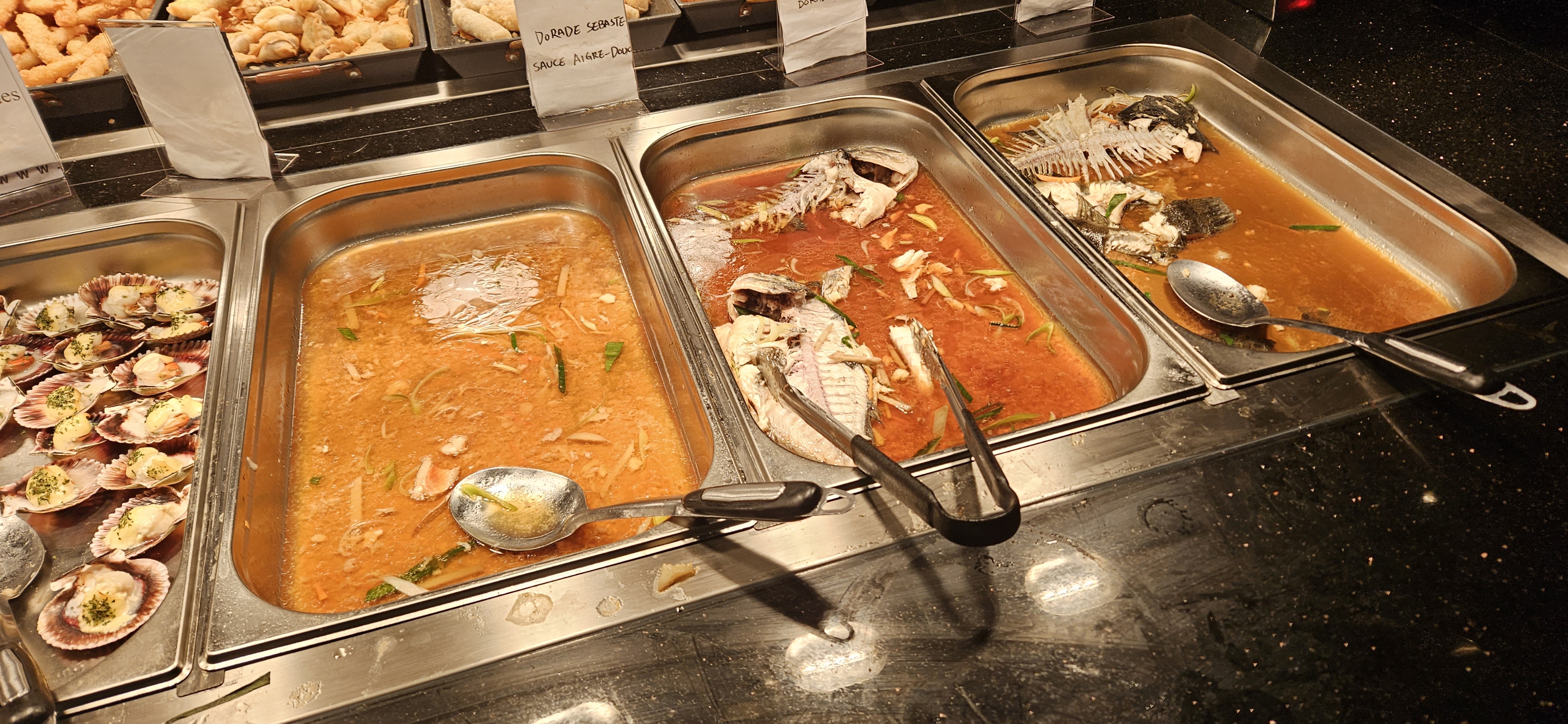 Fruits de mer pas du tout frais, plats chauds ou plutôt tièdes sans gout, desserts tout juste décongelés. si vous aimez les éclairs givrés vous en trouverez..... À part ça, c'est spacieux, parking facile, avis très mitigé sur le robot qui amuse les enfants...... Bref, plus de - que de + !