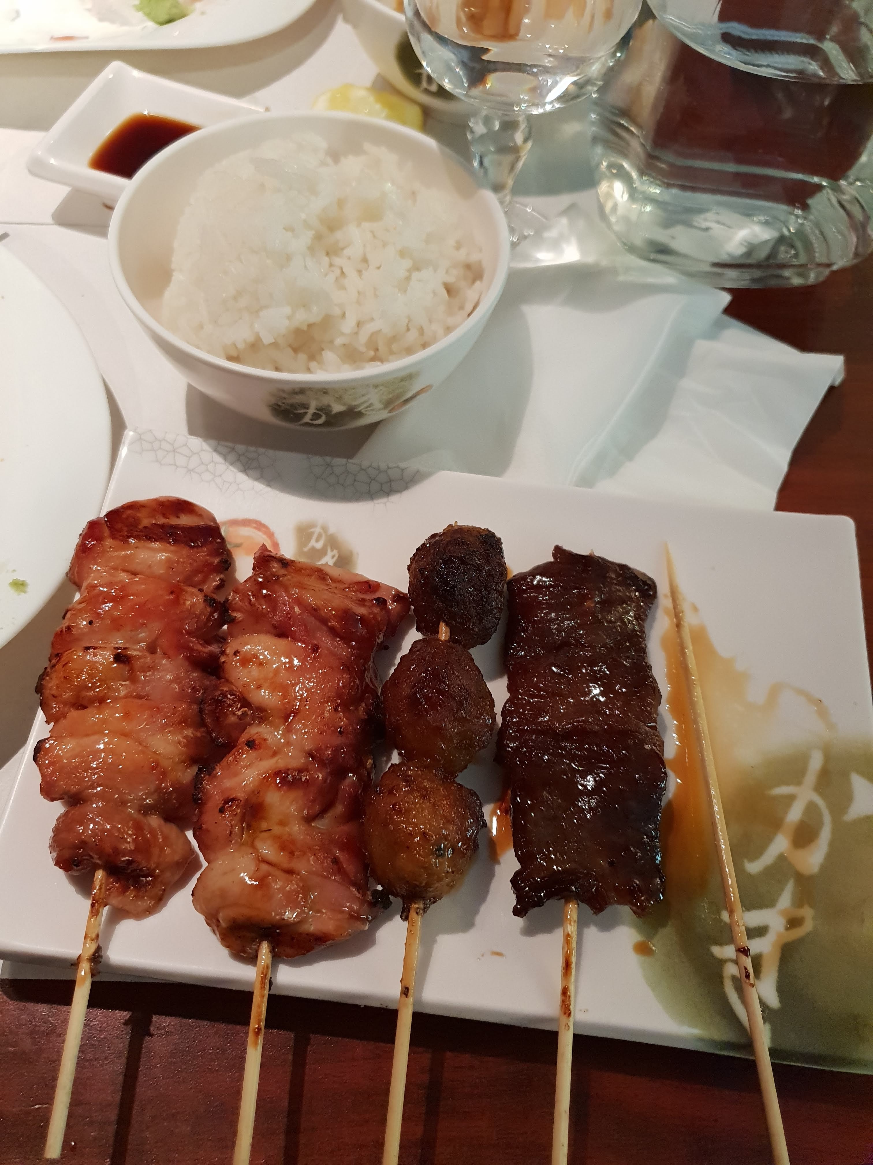La salade et la soupe étaient bonnes. Le bol de riz avait été préparé très, trop, longtemps en avance puisque la couche supérieure était toute sèche. Brochettes par fameuses non plus.. J'ai eu l'impression de manger du réchauffé pour celles au poulet. De plus, j'ai du payer 10cts supplémentaires pour payer par carte un menu a 9€90. Je trouve ça très peu commerçant.. En résumé, il y'a mieux ailleurs.