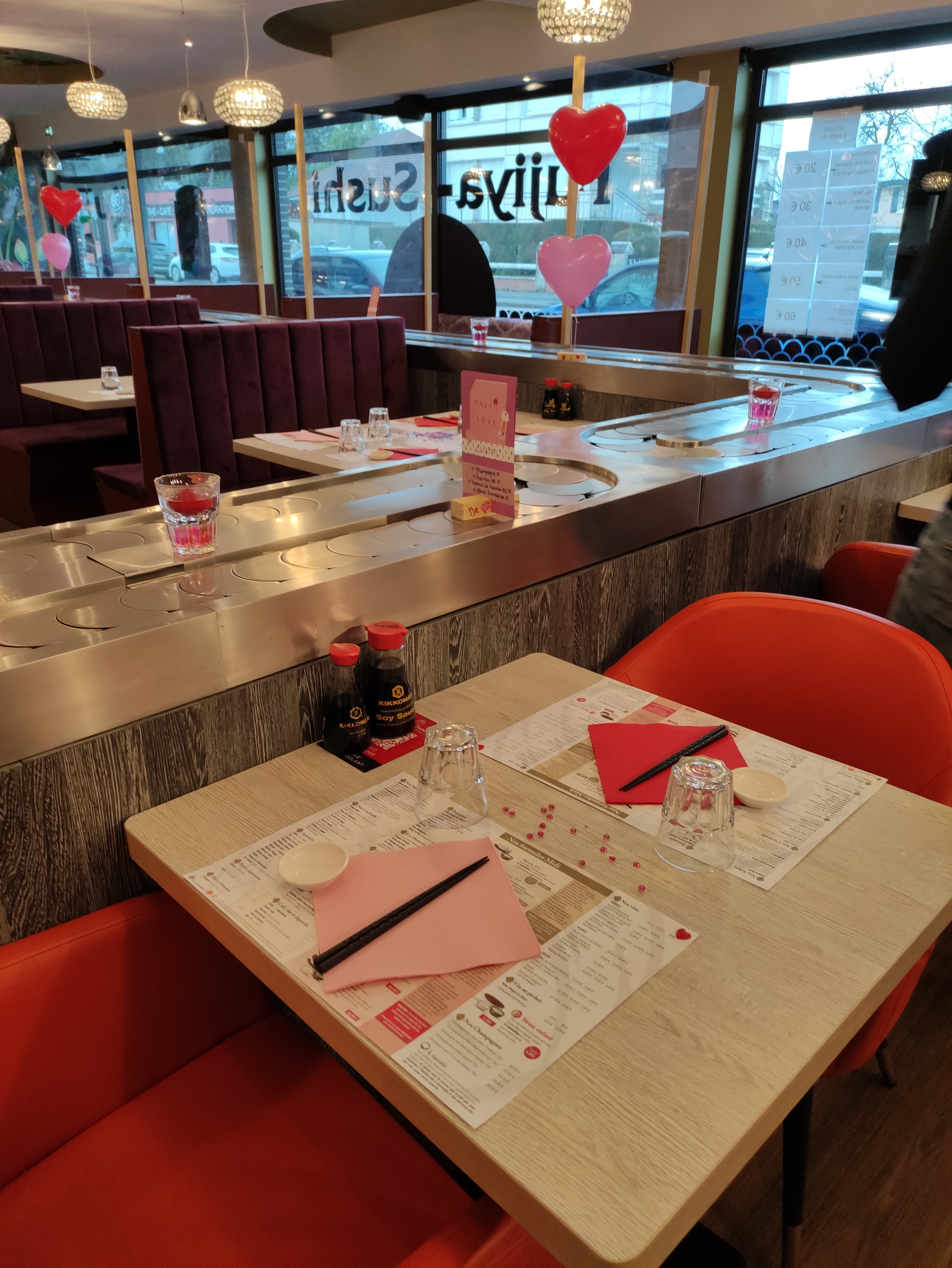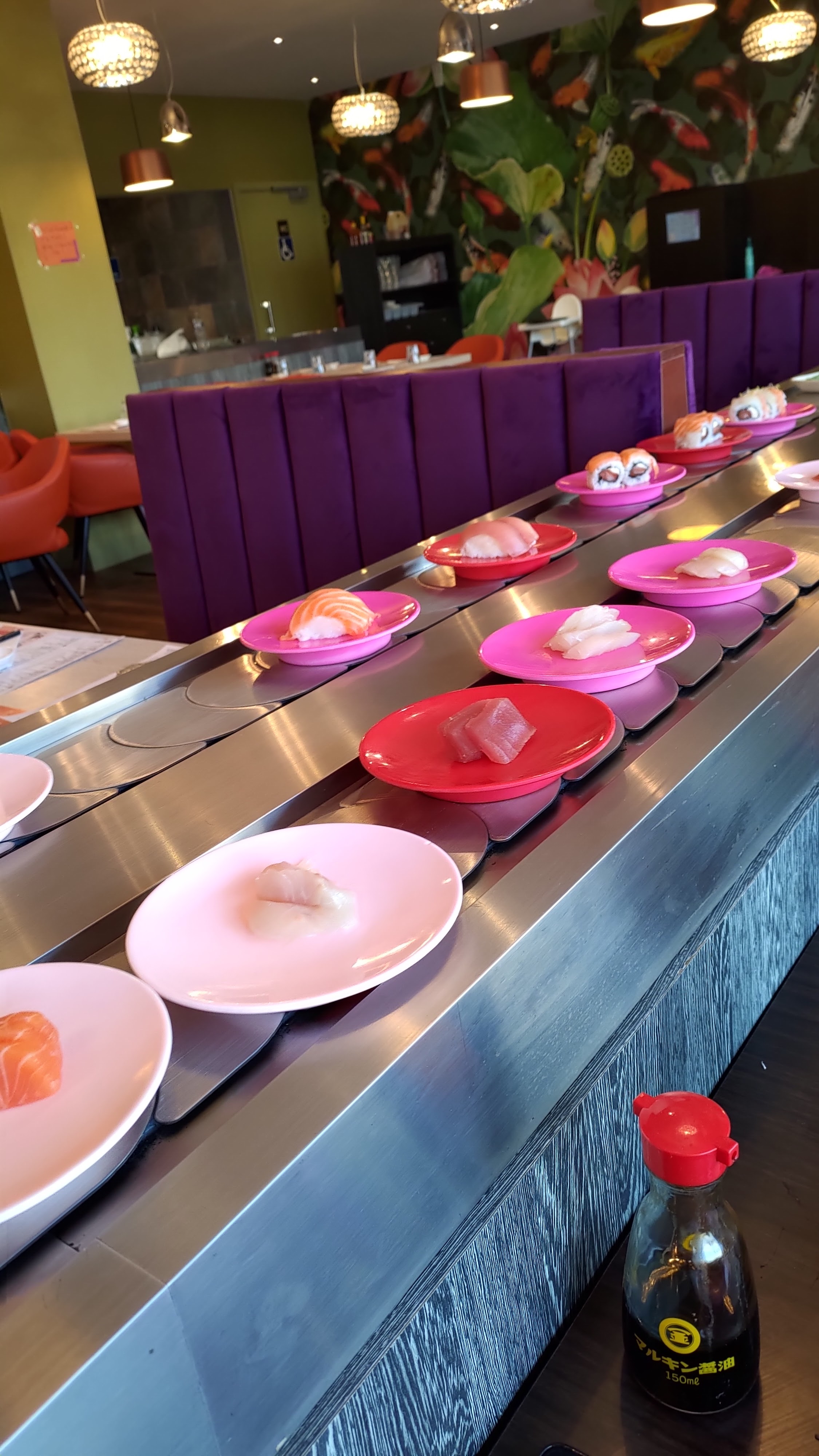 Nous avons passé un très bon moment dans ce restaurant le samedi dernier. C'était ma première fois mais j'ai hâte d'y retourner avec ma famille. Le jeune serveur était très souriant, sympathique et opérationnel. Le cadre est très sympa également. Le concept de tapis roulant j'adorrrrrrrrre:)