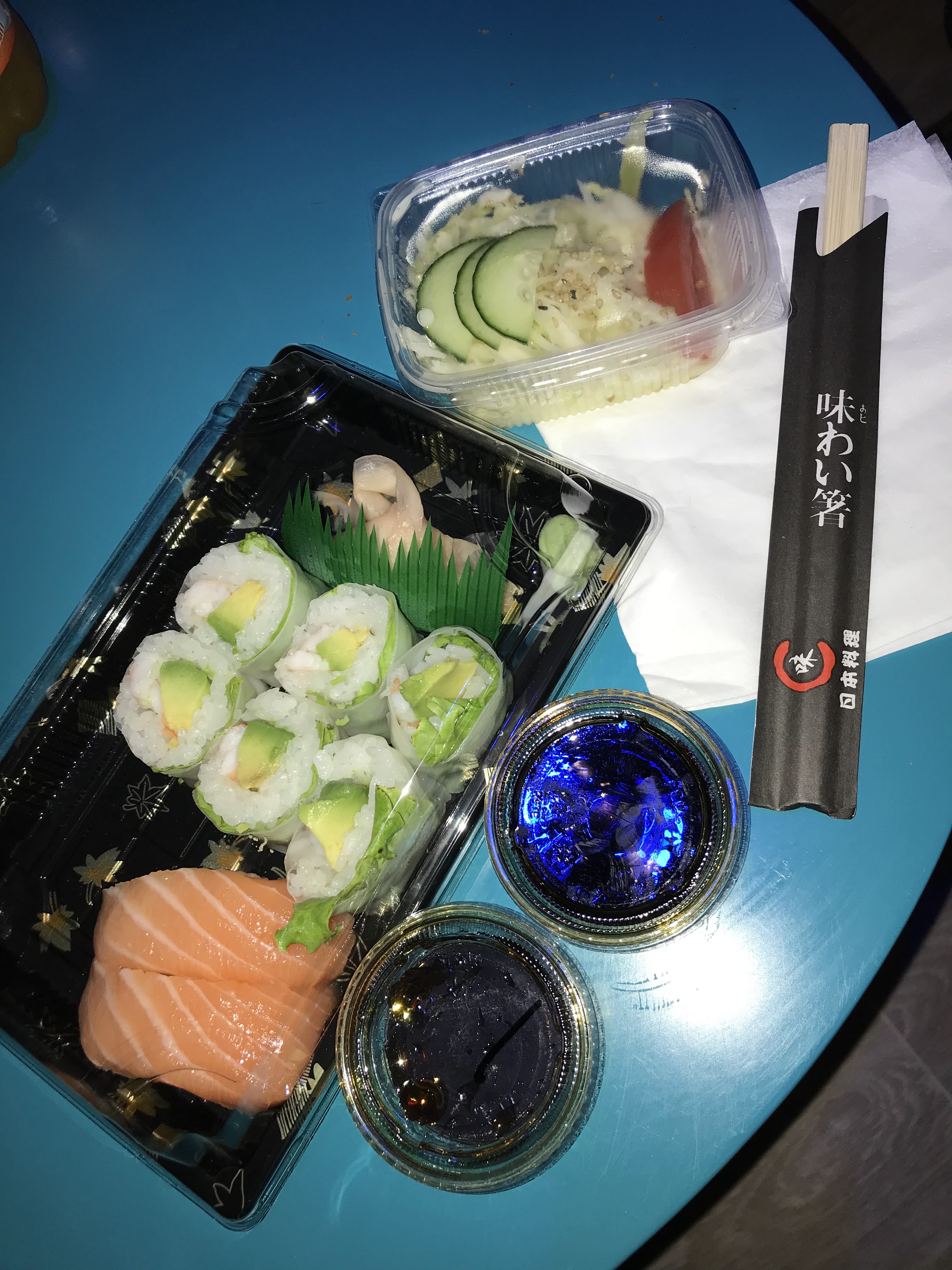 Très très bien ✅ J’ai aimé les printemps Rolls crevette & avocat Sushi saumon top belle présentation des plateaux J’ai pris en livraison Je recommande !