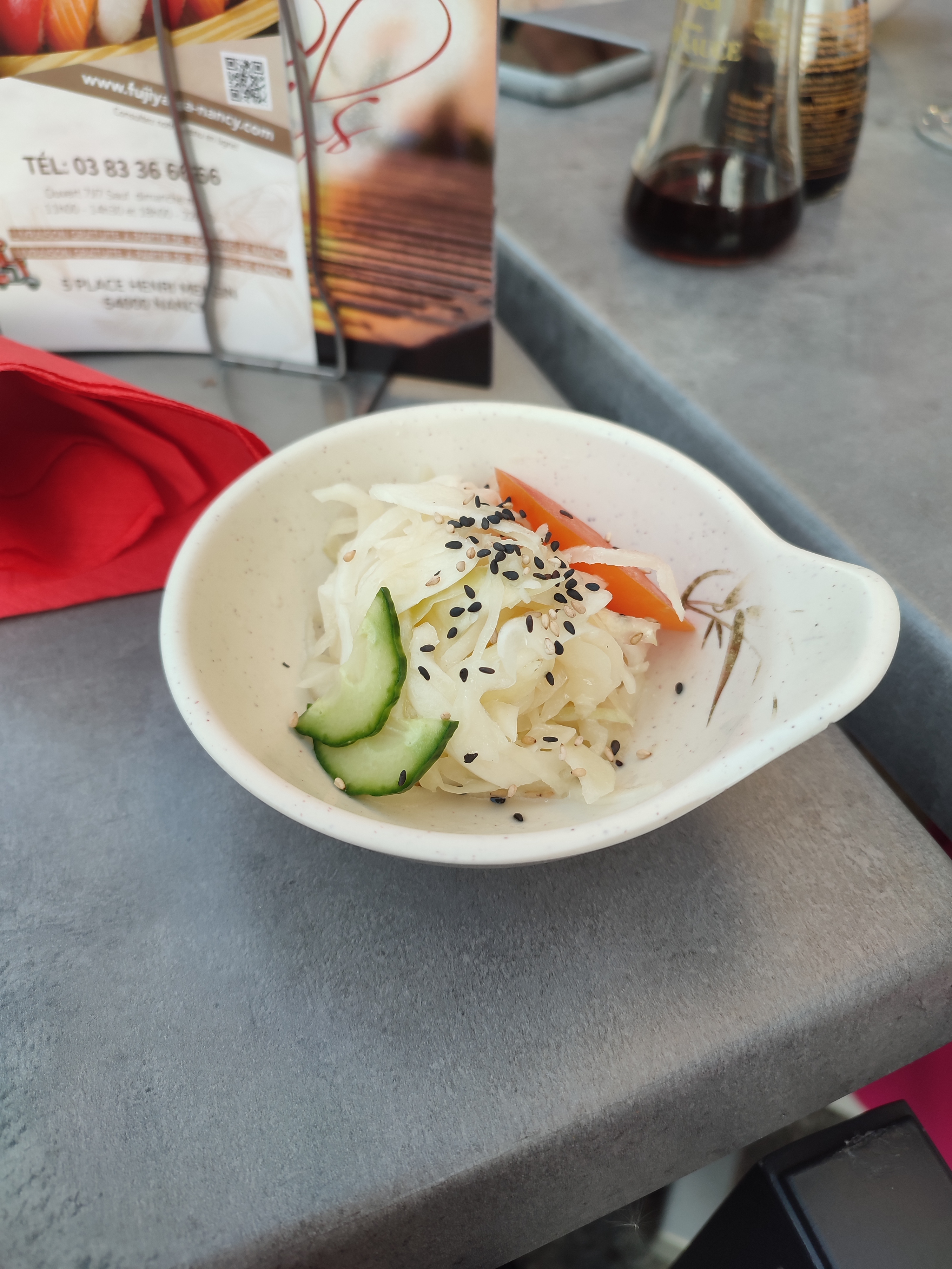 De passage sur Nancy Je cherchais un restaurant japonais et je me suis donc arrêté ici et mangé sur place. j’ai pris un assortiment de sashimis et des sashimis saumon en plus, déception l’assortiment était composé de trois sashimis de thon deux de dorade et cinq de saumon bref une commande pas complète. J’ai également commandé des brochettes de thon et saumon mais j’ai eu une mauvaise impression sur l’odeur des brochettes. Je ne recommande pas