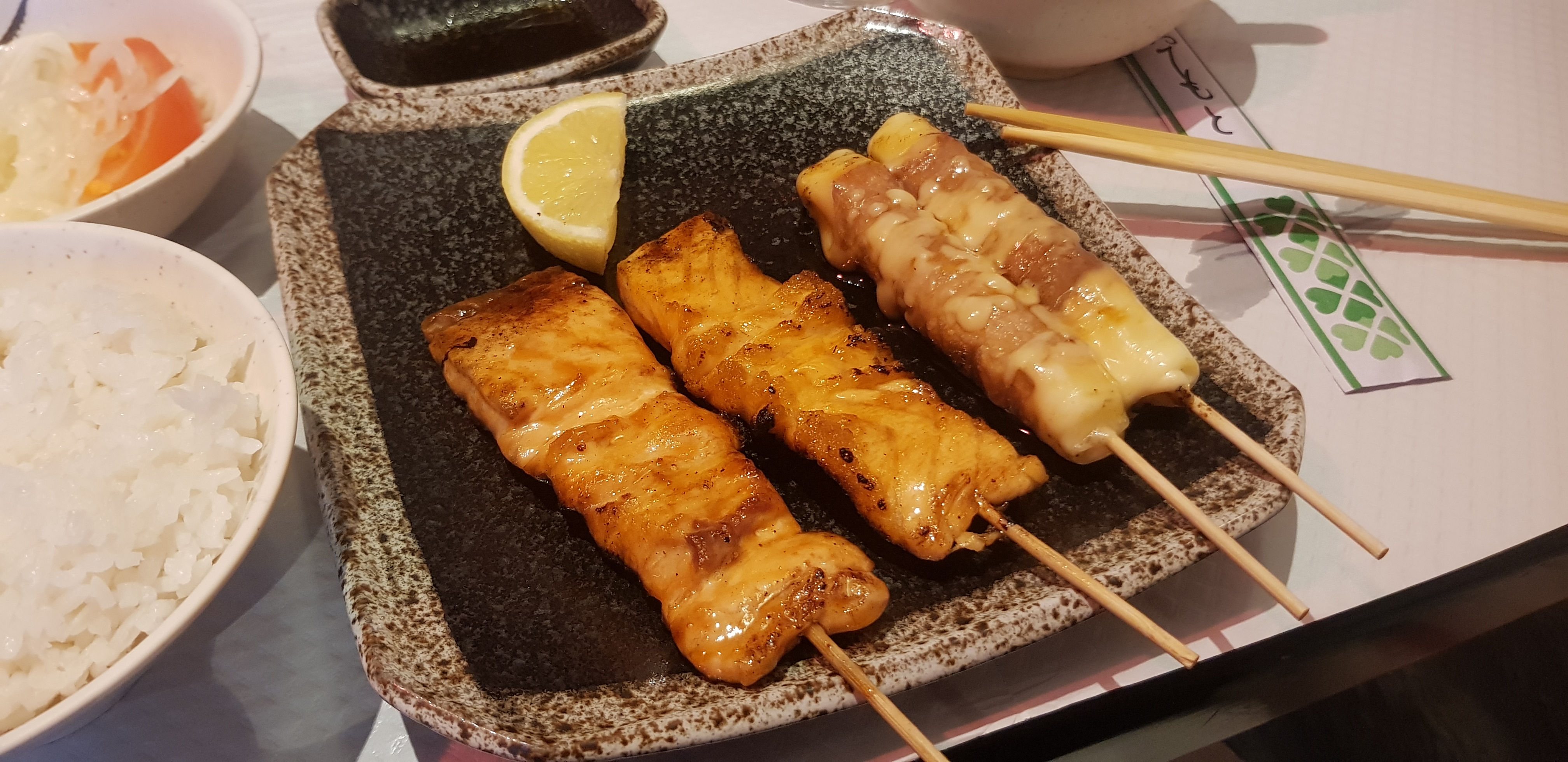 J'ai trouvé ce petit restaurant japonais et nous avons mangé des brochettes ou des yakitori. Ils ont bien fait et le restaurant était bon prix. J'adore le dîner.