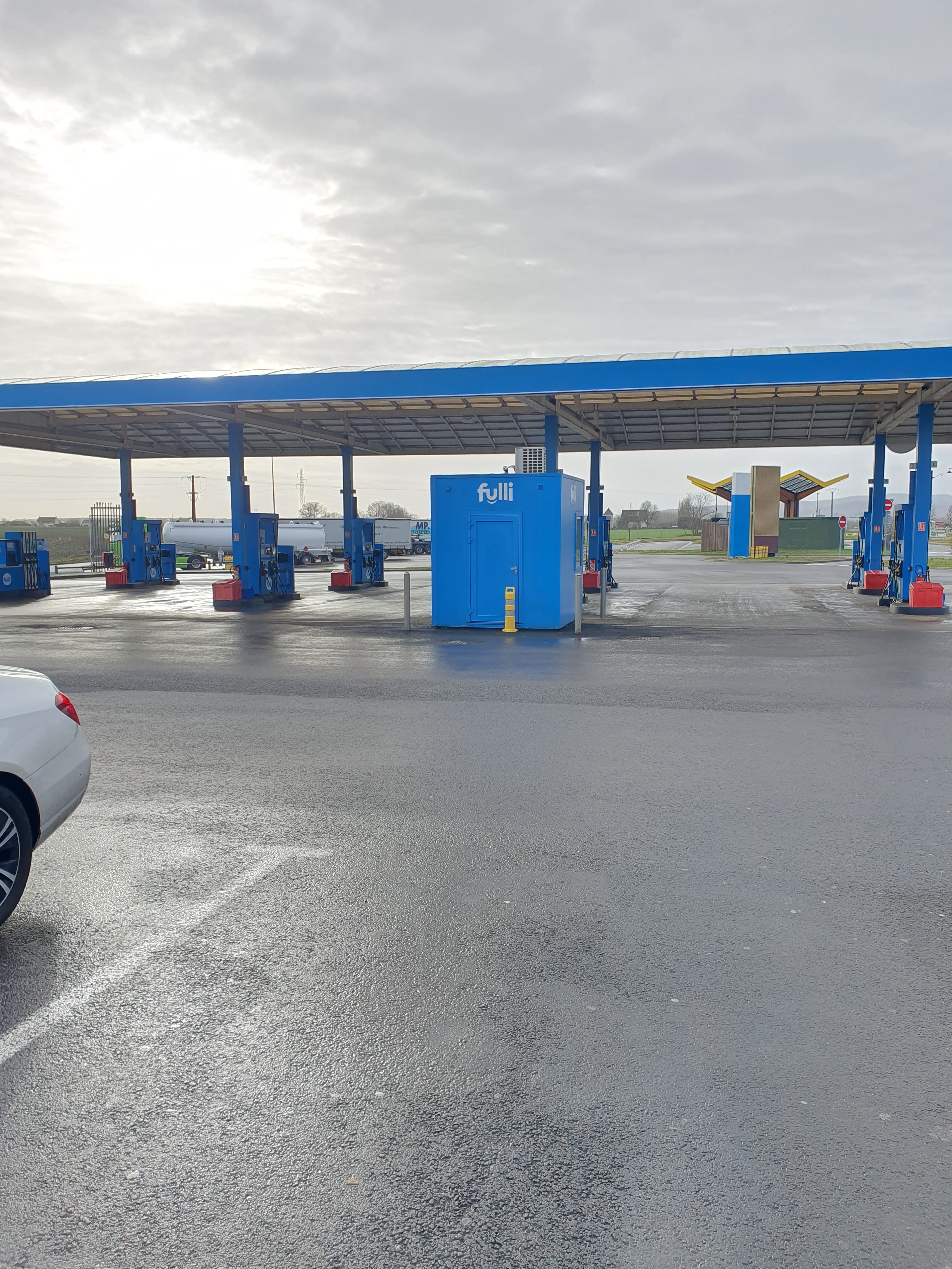 Enfin une pompe à essence dont le prix est abordable sur l'autoroute et le prix du kw/h affiché. Environnement spacieux