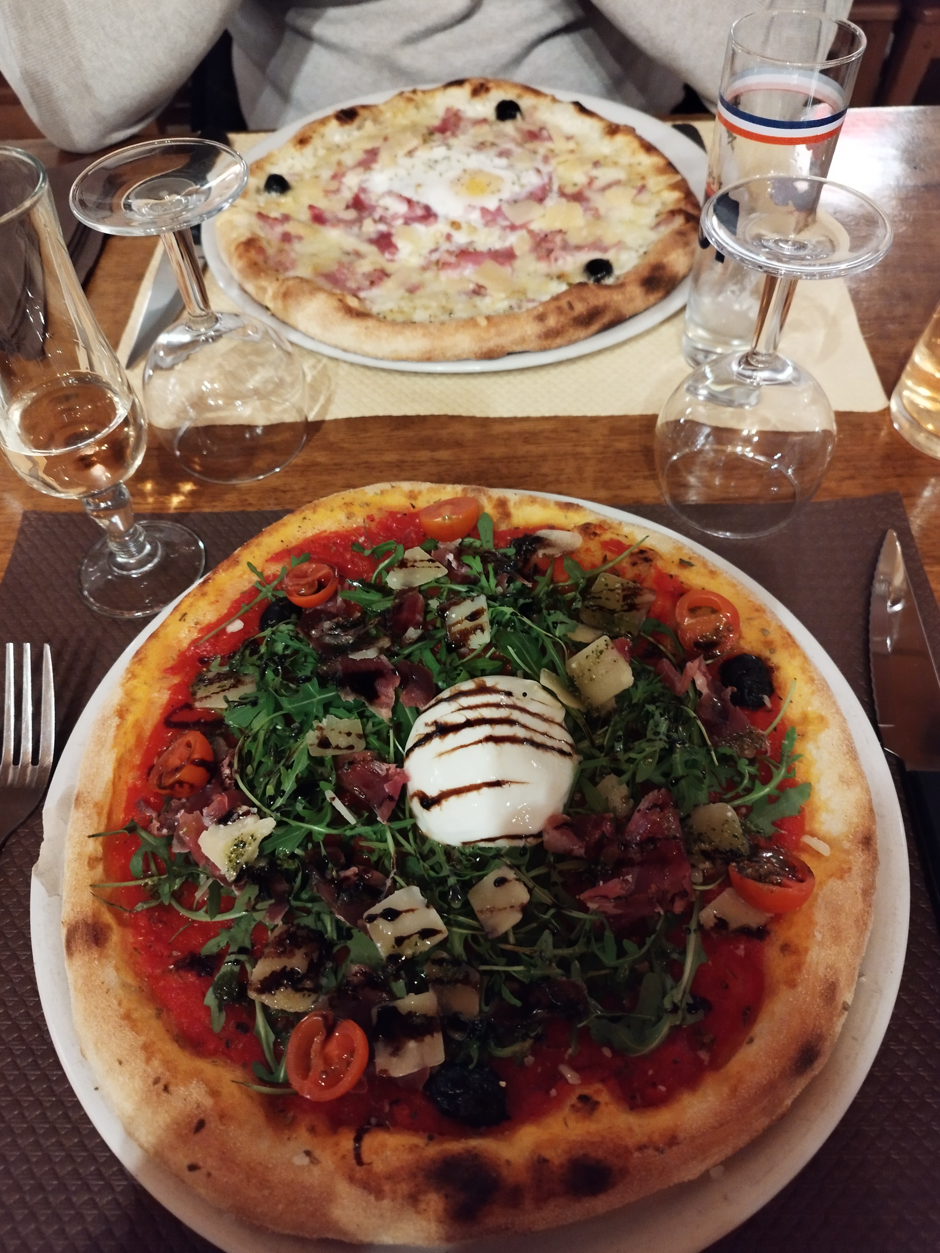 Nous avons pris des pizzas à emporter et elles sont excellentes! Nous y avons également mangé le soir, très bons plats et copieux.