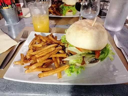 Frites maison très bonnes, idem pour les burgers. La pâte à pizza mériterait de lever plus 😉👍, elle est un peu galette, mais la garniture est copieuse. Une serveuse très pro.
