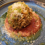 Je ne saurais trop recommander ce charmant petit restaurant. Ils proposent une carte courte construite autour d'ingrédients de saison qu'ils achètent frais quotidiennement au marché local. Chaque plat est un pur délice : joliment présenté, profils de saveurs intéressants et originaux, et service convivial et sans prétention. Nous sommes ici en mai et avons donc pu nous asseoir dehors dans la rue étroite de cette belle ville balnéaire. Essayez Fusio à Sanary ! Tu seras content de l'avoir fait.