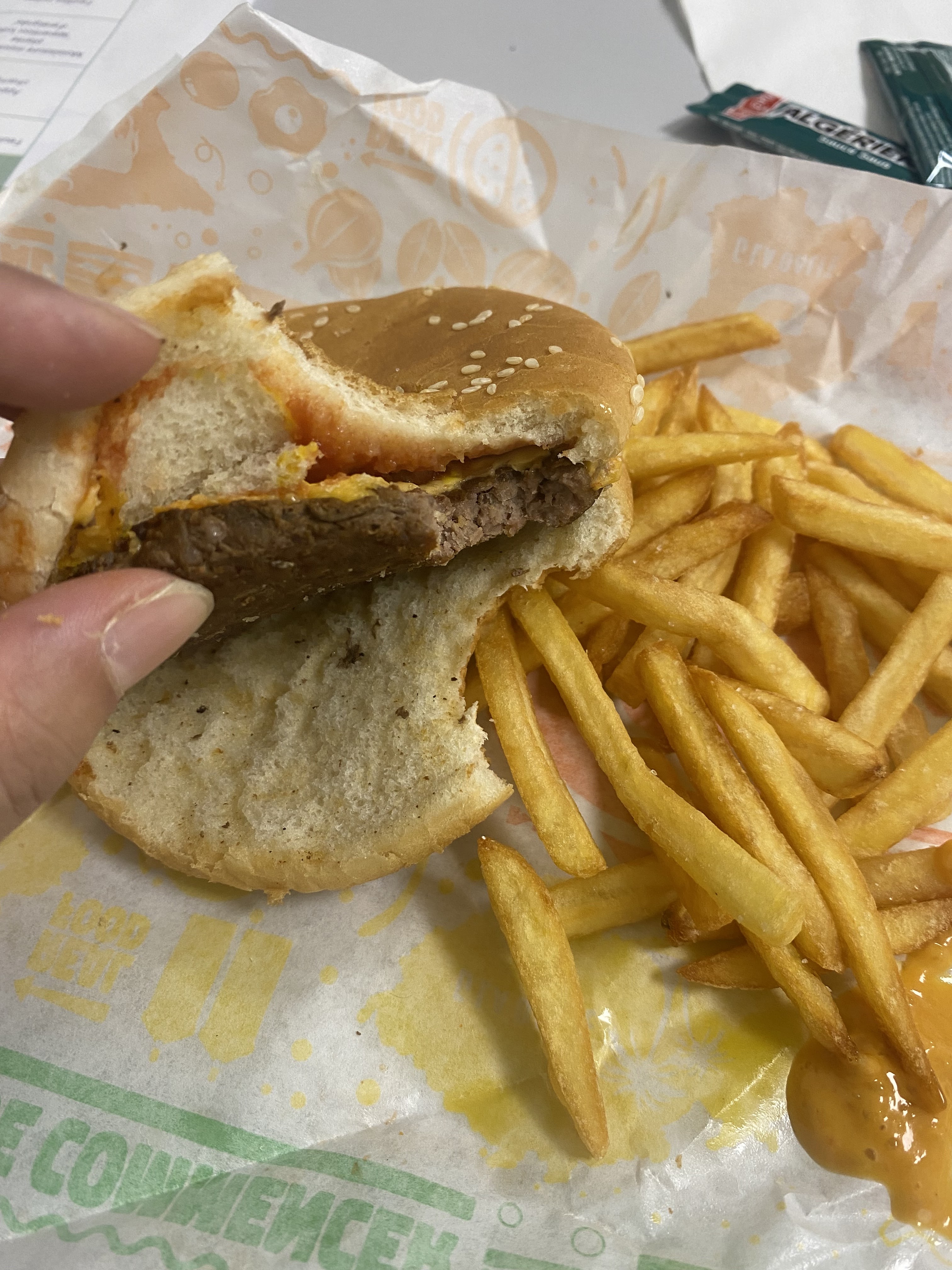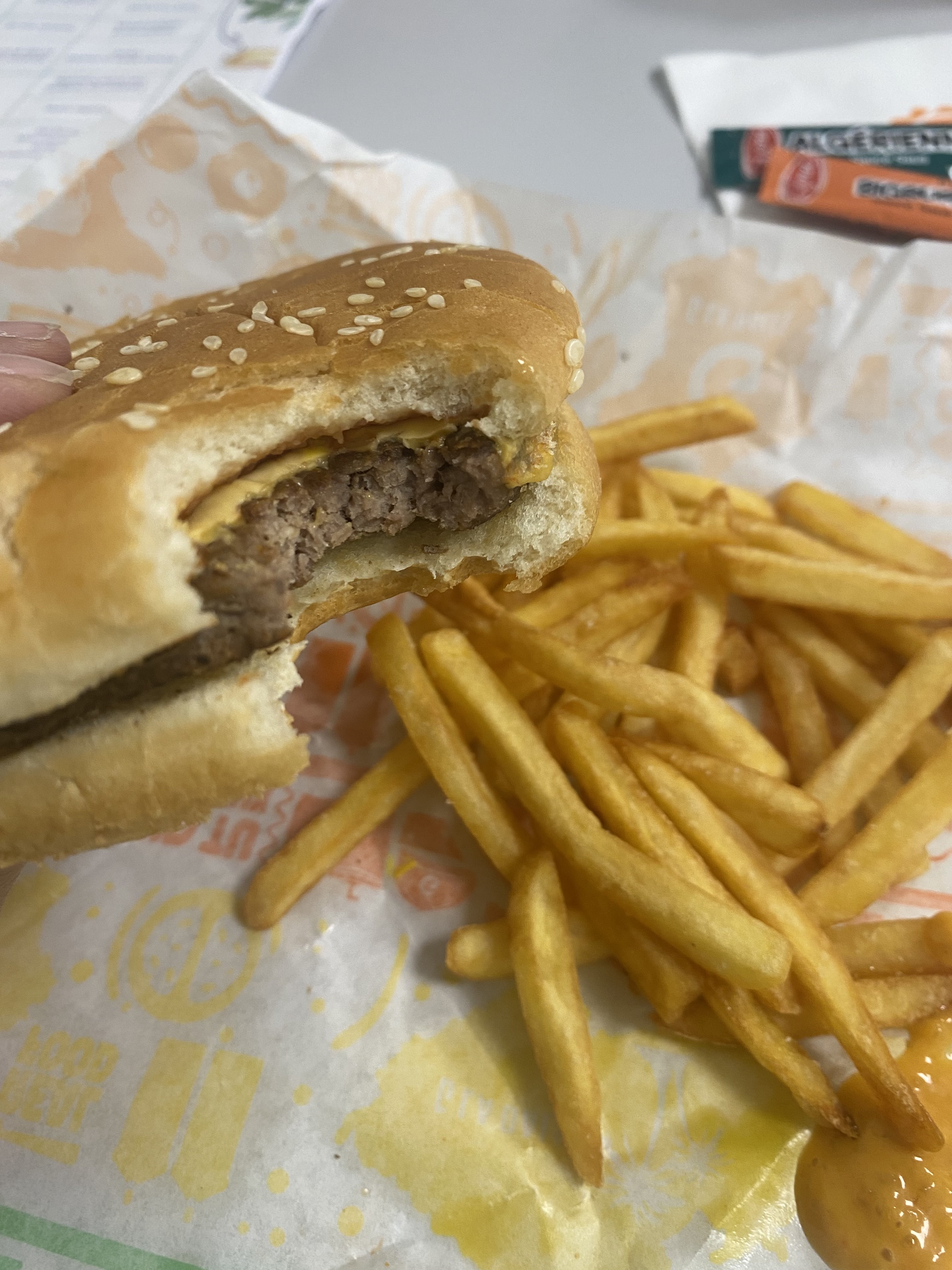 Les Hamburger sont sec pas de sauce ni cornichon dedans.. les frites été froide et molle. Les burgers sont minuscules comparé à ce qui est affiché. J'ai été malade toute la nuit le burger n'est vraiment pas passé