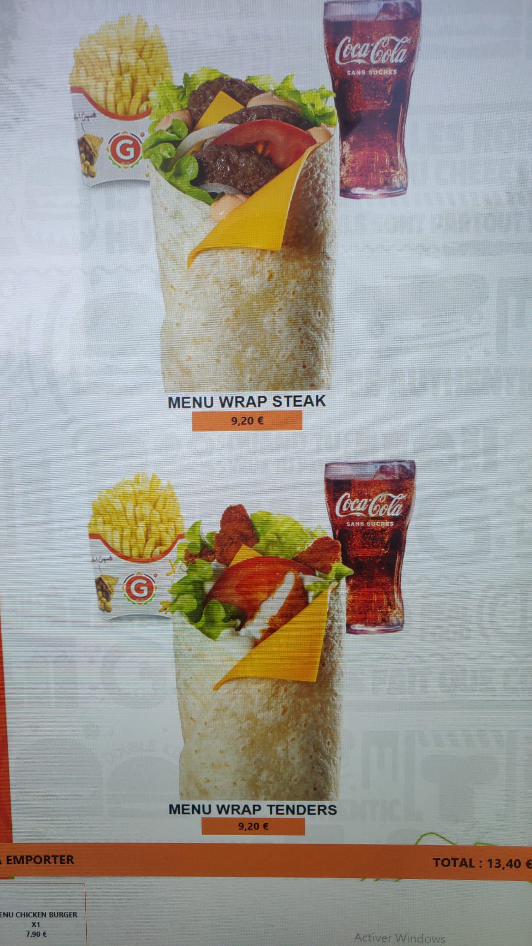 3 menu G9 + 2 tiramisu à emporter 42€ résultat il manquait 2 frites sur 3 et pas de tiramisu...enfant déçus Sans oublier les canettes chaude ! Vous arrivez à boire un coca chaud vous ? La base du commerce c'est de se mettre à la place du client, j'espère que vous tiendrez compte des nombreux avis négatifs pour vous améliorer...perso c'était la dernière fois chez vous.