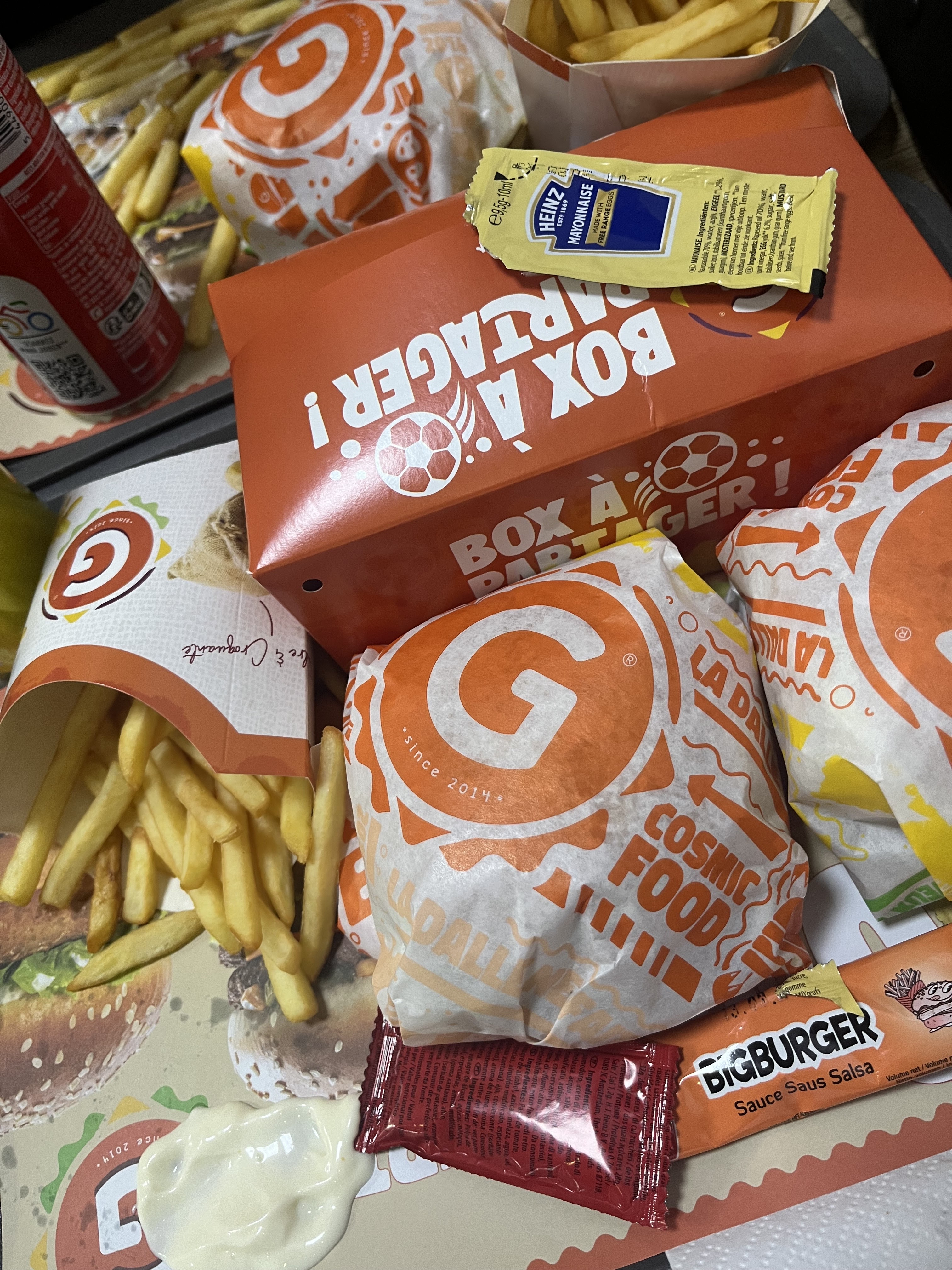La première fois j'avais pris sur deliveroo, on a tous ADORÉ mais les pris sont exorbitants sur ce site, il vaut mieux aller sur place on gagne au change niveau prix( deliveroo 15,90€- sur place moins de 10€). Bref on a recommandé hier et on est tjrs satisfait 😍😍😍. Le Chicken bien épicé mais manque un peu plus de goût sinon le reste une tuerie. La première fois les frites étaient pas top( je penses que c'est dû à la livraison), mais hier soir bien chaude et croustillante. Continuez comme ça car on est très difficile a satisfaire en temps normal. Je conseille les menus double kiff ( mon préféré le g9 ).