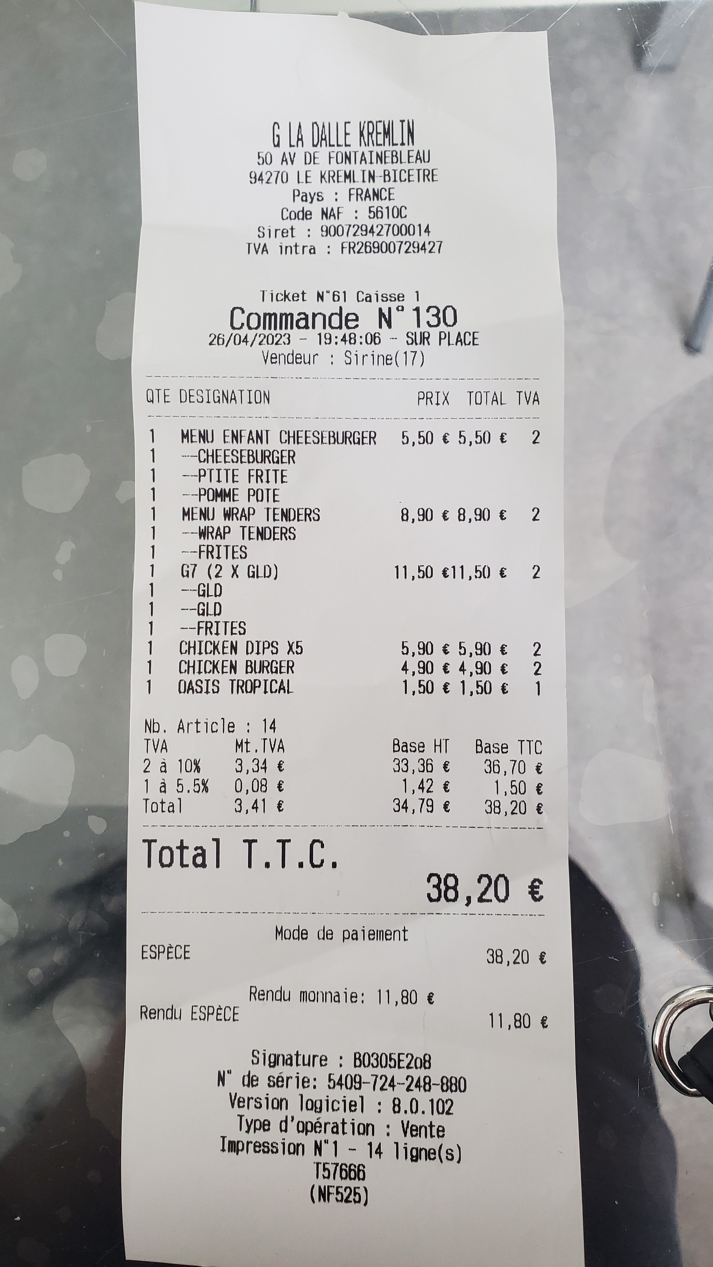 De passage au Kremlin j’ai été tres satisfaite de ce G la dalle, le service a été rapide et le restaurant très propre 👍🏼 J’ai également apprécié l’accueil de l’équipe !