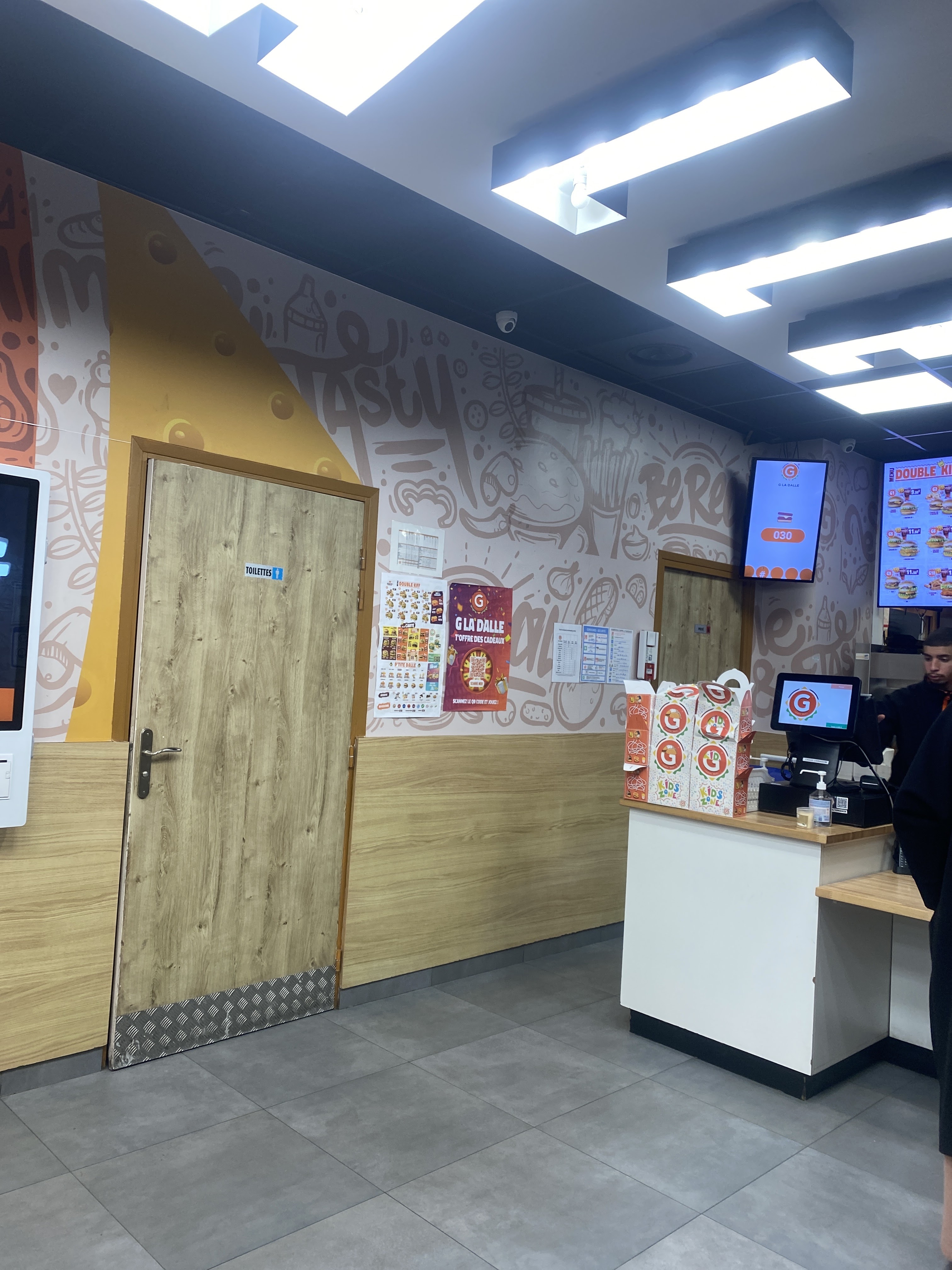 Endroit propre , burgers très bon ,rapide , je mange souvent chez G La Dalle le gros point positif c’est que la qualité ne change pas tjrs la même. On a pas de surprise. Équipe au top accueillante continuez comme ça RAS
