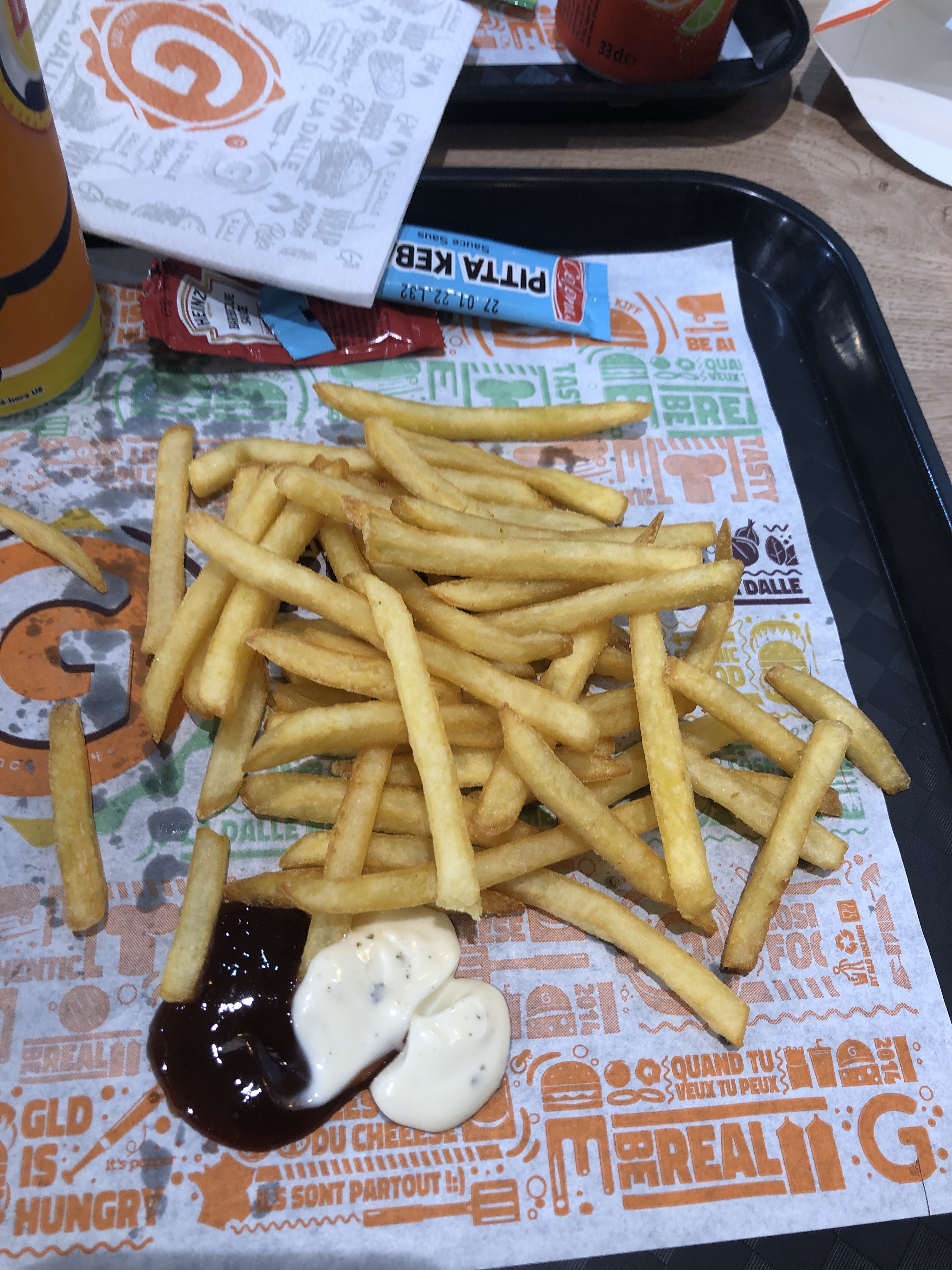 G la galle par ou commencer…. Je vous laisse admirer la quantité de frite d’un menu à 9€ ! Le wrap mdr c’est pas un wrap que j’ai mangé mais bien un tacos, le concept n’est apparemment pas compris chez g la galle. Cet enseigne m’a dégoûté du concept de la restauration rapide et si vous avez la dalle n’allez pas là-bas…