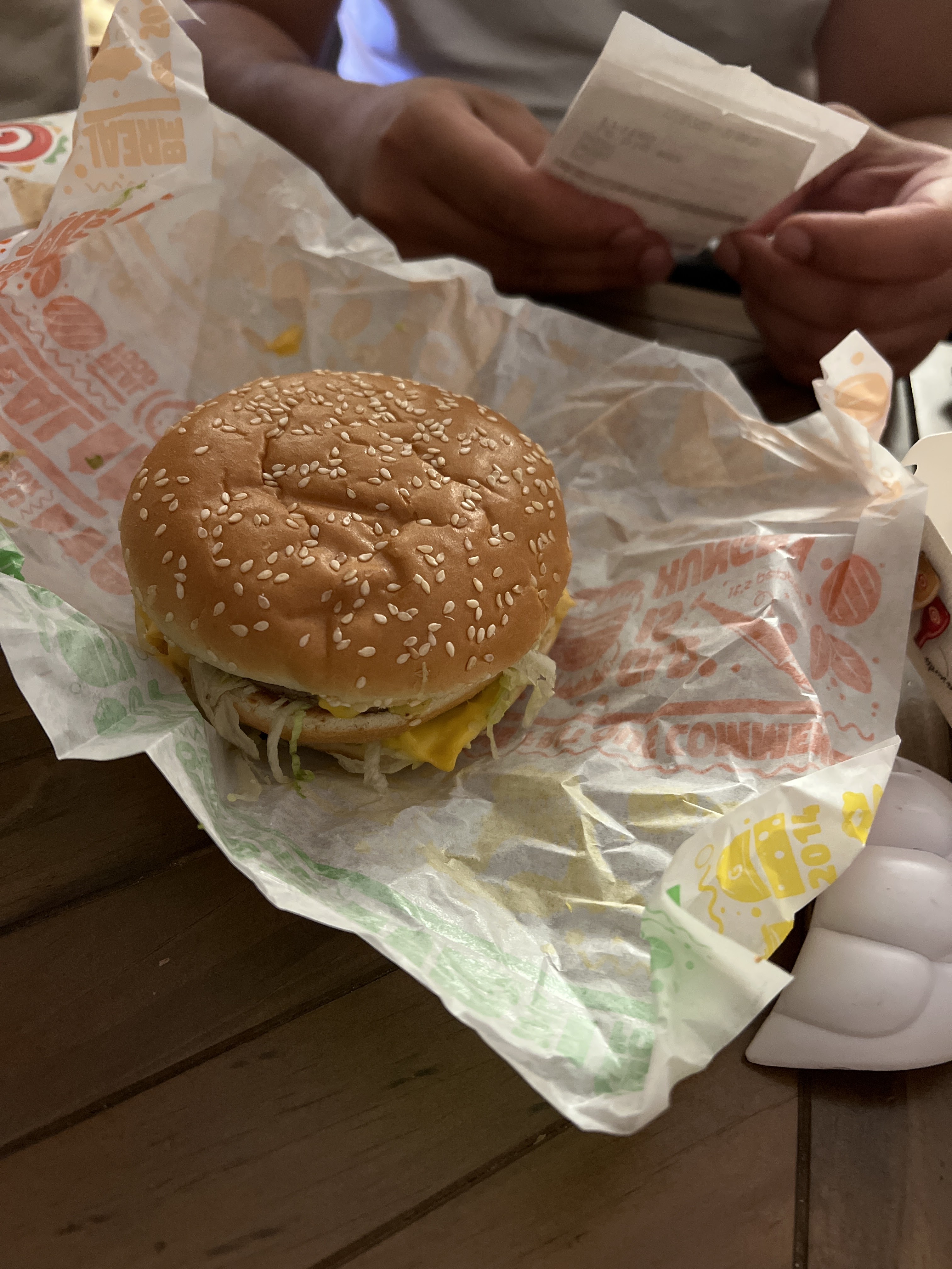 Waw 😍😍 j’ai été servi par un jeune homme super agréable souriant, poli, beau etc j’ai pris un double grill et franchement c’était super bon je recommande à 100% 😍