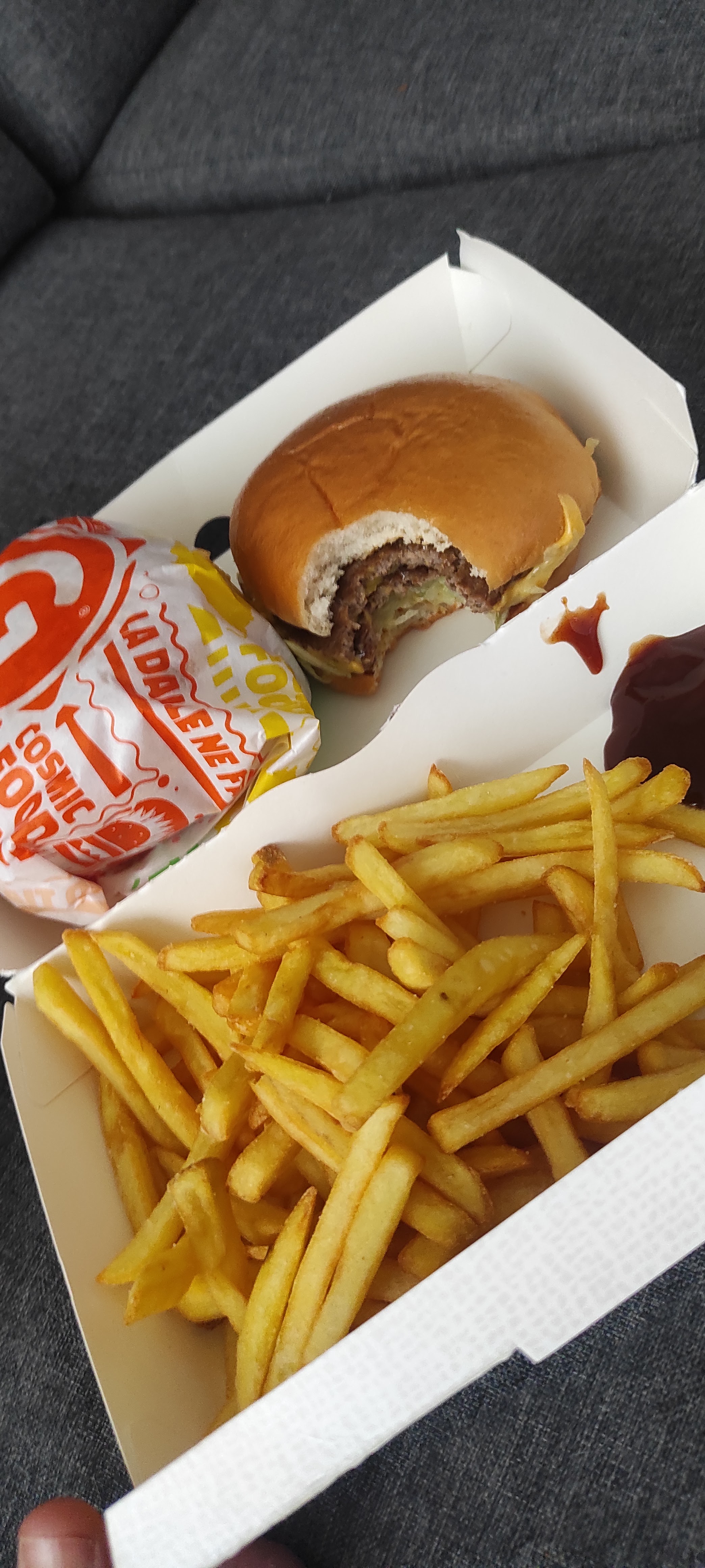 Hamburger très bon frites très bonnes après c'est dommage ya que dès menus tu peux prendre un hamburger seul