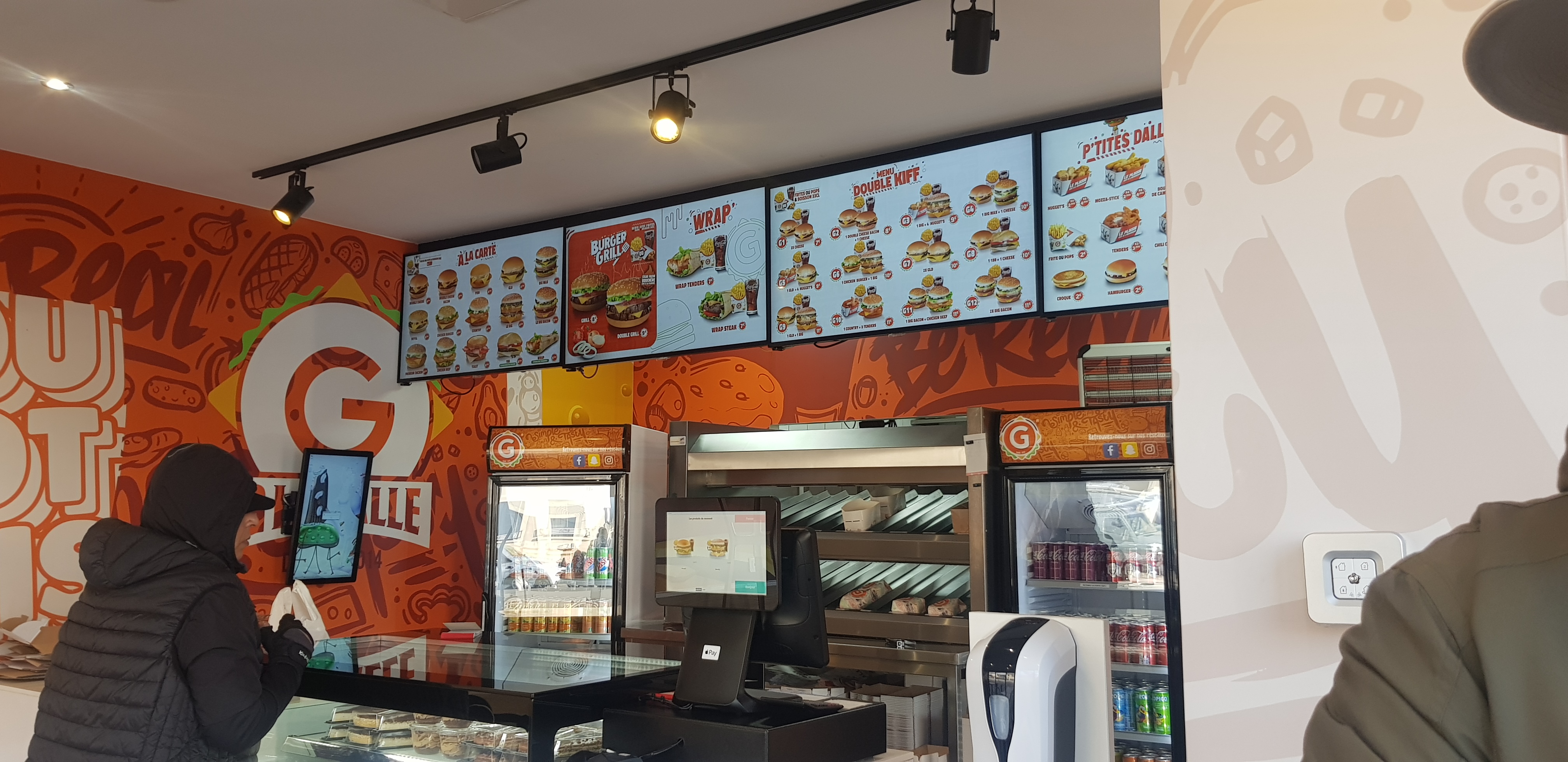1ère expérience chez G LA DALLE et le bilan est très mitigé. Points négatifs : . Frites trop huileuses, façon Chicken Spot en moins bien. . Pas de place de parking autour. . 25 min pour être servi (arrivée 13h30 - servi 13h55... 7 commandes servies avant moi). Ici, peut-être est-ce parce que le début ? . Sauces de marque bas de gamme Colona. Franchement, au prix auquel vous vendez vos burgers je ne suis pas d'accord. Allez sur Mum's ou Nahwal's plutôt. . La caissière qui dit en dessert vous voulez quoi?... ce n'est pas une bonne formule, limite on dirait que c'est offert. Je n'ai pas apprécié. Points positifs : . Burgers qui sont bons (par gourmets mais pour de l'industriel je les trouvent meilleurs que leur concurrent principal PB). C'est vraiment la seule vraie satisfaction. . Emballages soignés. Donc 2 étoiles.