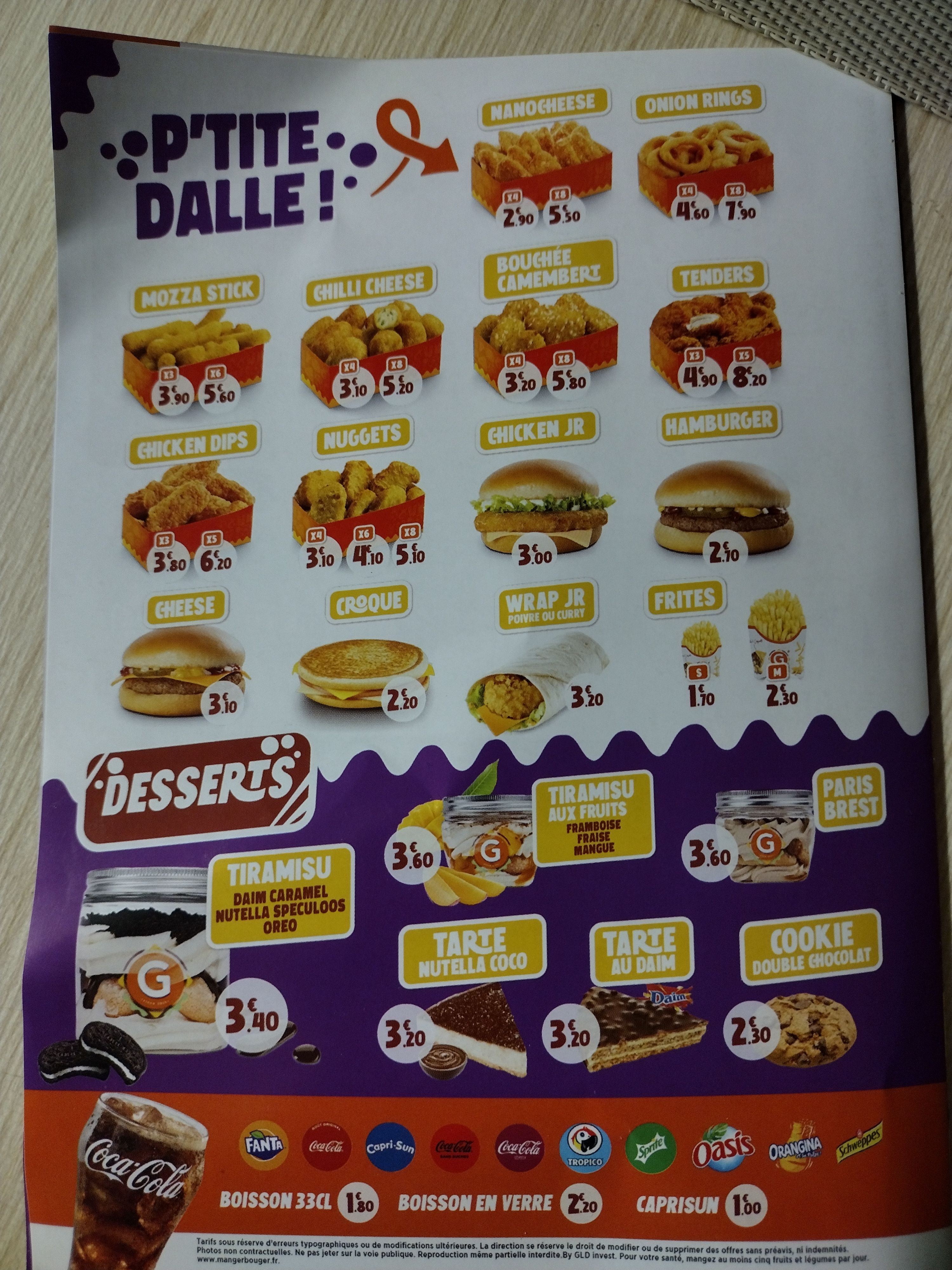 Mes enfants raffolent de vos nuggets et le service toujours impeccable c’est appréciable.