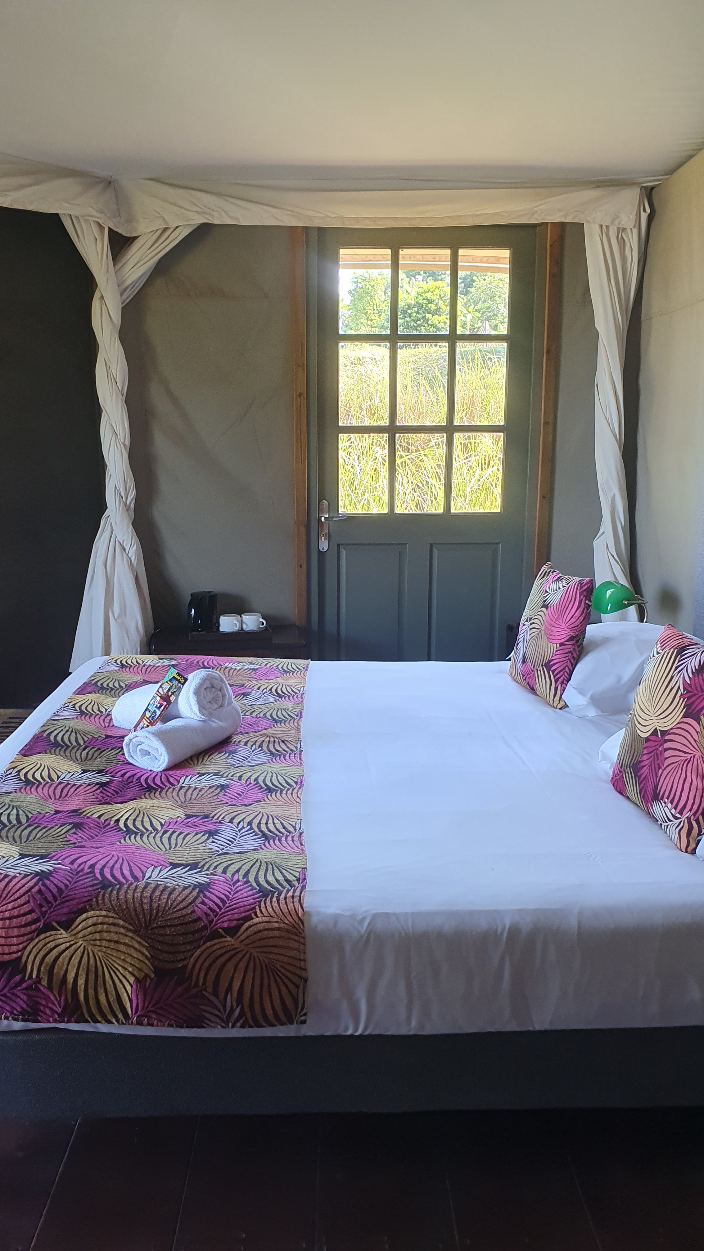 L'idée est excellente et les hébergements sont très sympathiques. Néanmoins, la route, située à quelques mètres des tentes, est extrêmement passante dès 5h du matin, notamment empruntée par les tracteurs et leurs bennes pour emmener la canne aux points de collecte. Le restaurant est extrêmement cher comparativement à la qualité servie aussi bien au dîner qu'au petit déjeuner.