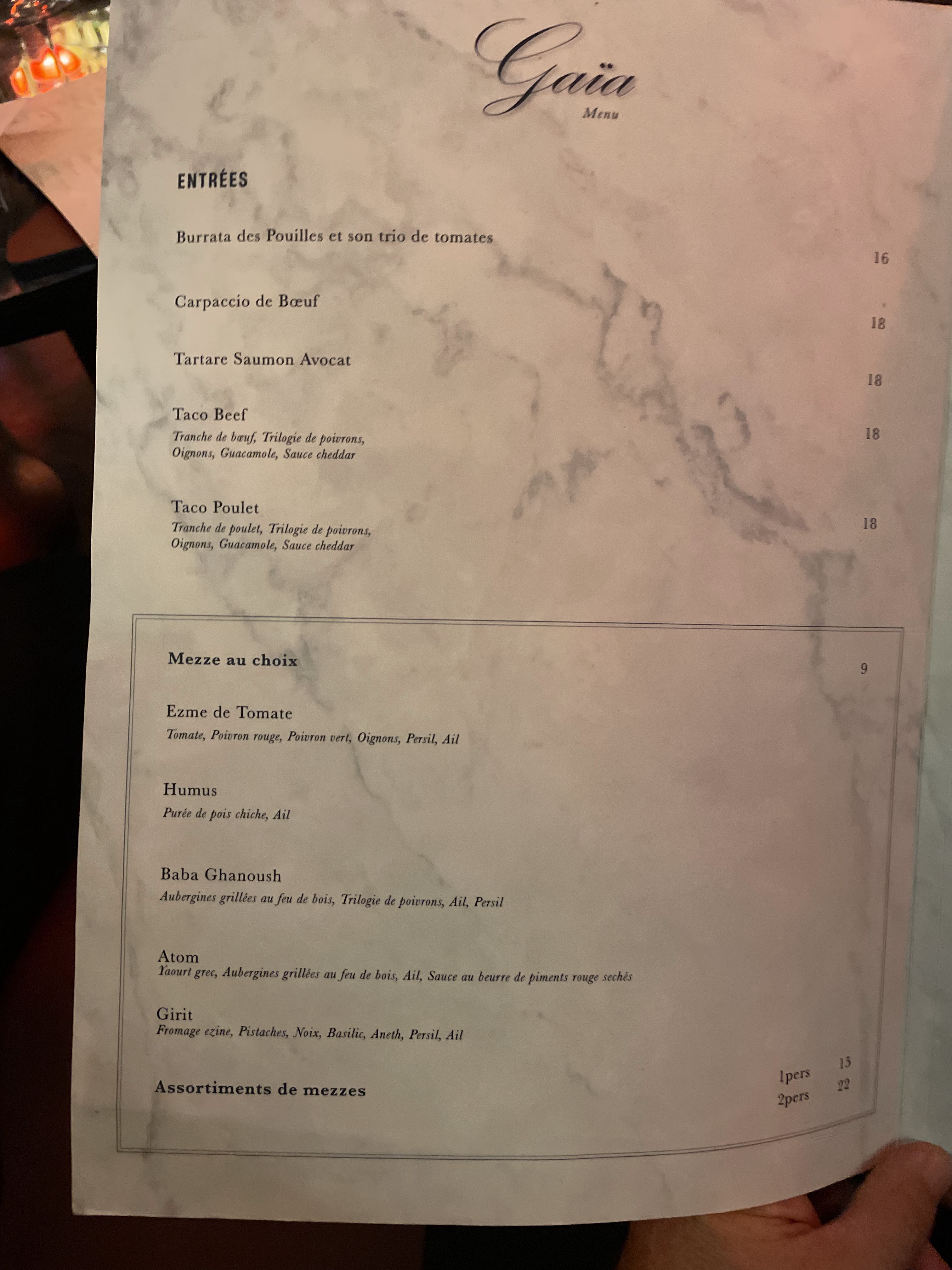 Contrairement au avis que j’ai pu voir, Le Gaia reste le meilleur restaurant Lounge que j’ai pu faire sur Paris . La nourriture est très bonne et l’ambiance s’y suis. Nous avons eu un très grand retard et le personnel a su s’arranger pour que nous puissions avoir une table à l’intérieur. On a pu fêter l’anniversaire de notre copine c’était vraiment un 10/10. Nous ne regrettons vraiment pas d’avoir quitter Bruxelles pour venir dans ce restaurant. Merci au vigile Saphir et Sabri qui ont été d’une gentillesse vraiment rien à dire et nous remercions le personnel qui a été au petit soin avec nous ! On partagera et on reviendra