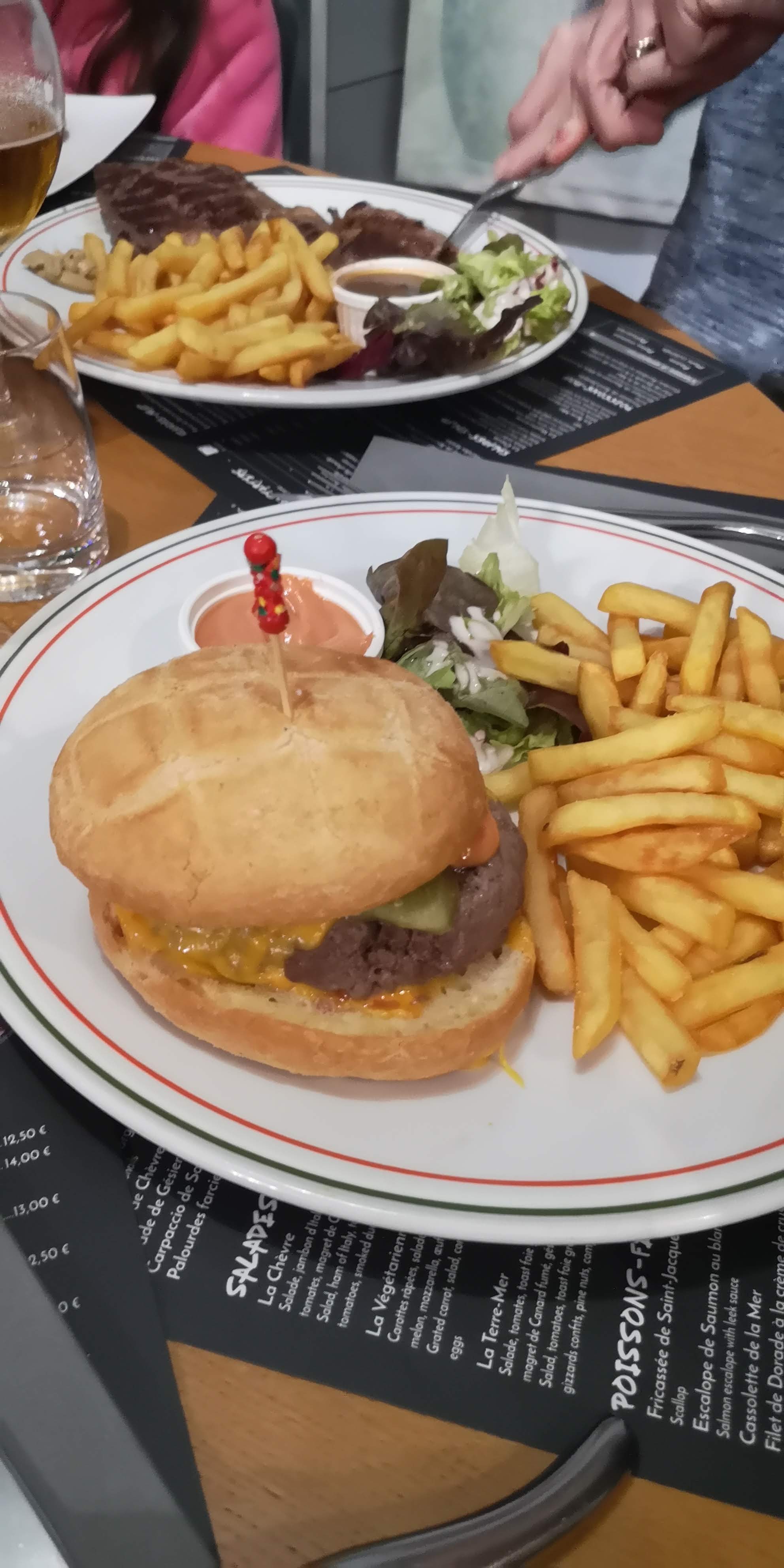 Très bonne adresse de la part du responsable de notre hôtel. La cuisine est très bonne et le service agréable même si la serveuse avec les lunettes avec un âge avancer est sèche dans son élocution, elle reste drôle. L’extérieur est jolie et agréable. Large panoplies de plats, ce qui n’aide pas à faire un choix. Le planche de charcuterie est bien fournie. L’assiette de pâtes et de moules frites est énorme ! Pain rassis Nous avons subi un voisin de table bourrer et désagréable avec les serveuses, pas agréable du tout pour la fin du repas, une chance il arrive pour le désert.. Claquer la plaque du repas du jour sur notre table pour montrer à notre voisin de gauche ce qu’il vas pouvoir prendre, je trouve cela limite .. Il n’y à déjà pas beaucoup d’intimité de base vers notre gauche.. nous avons l'impression de diner avec nos voisins (Voir photos) Manque de places pour sortir payer, un mondes de dingue, une files d’attente de 15 personnes avec les serveuses et serveurs qui passent entre le murs et nous en rallant .. Je recommande, il y à des améliorations à faire.