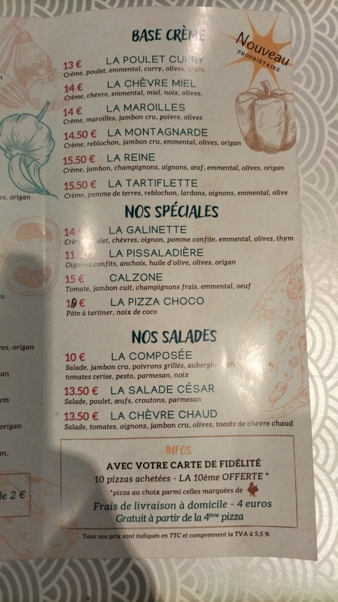 Hello Je suis retourné après 1 an Nouveau propriétaire adorable !! Lieux très chaleureux J'ai pris une pizza chorizo et je peux vous assurez que les produits sont de qualité !! La pâte est moelleuse, sauce tomate pas acide et elles sont généreuse!!! Un vrai DELICE Ce restaurant en vaut le détour !!!