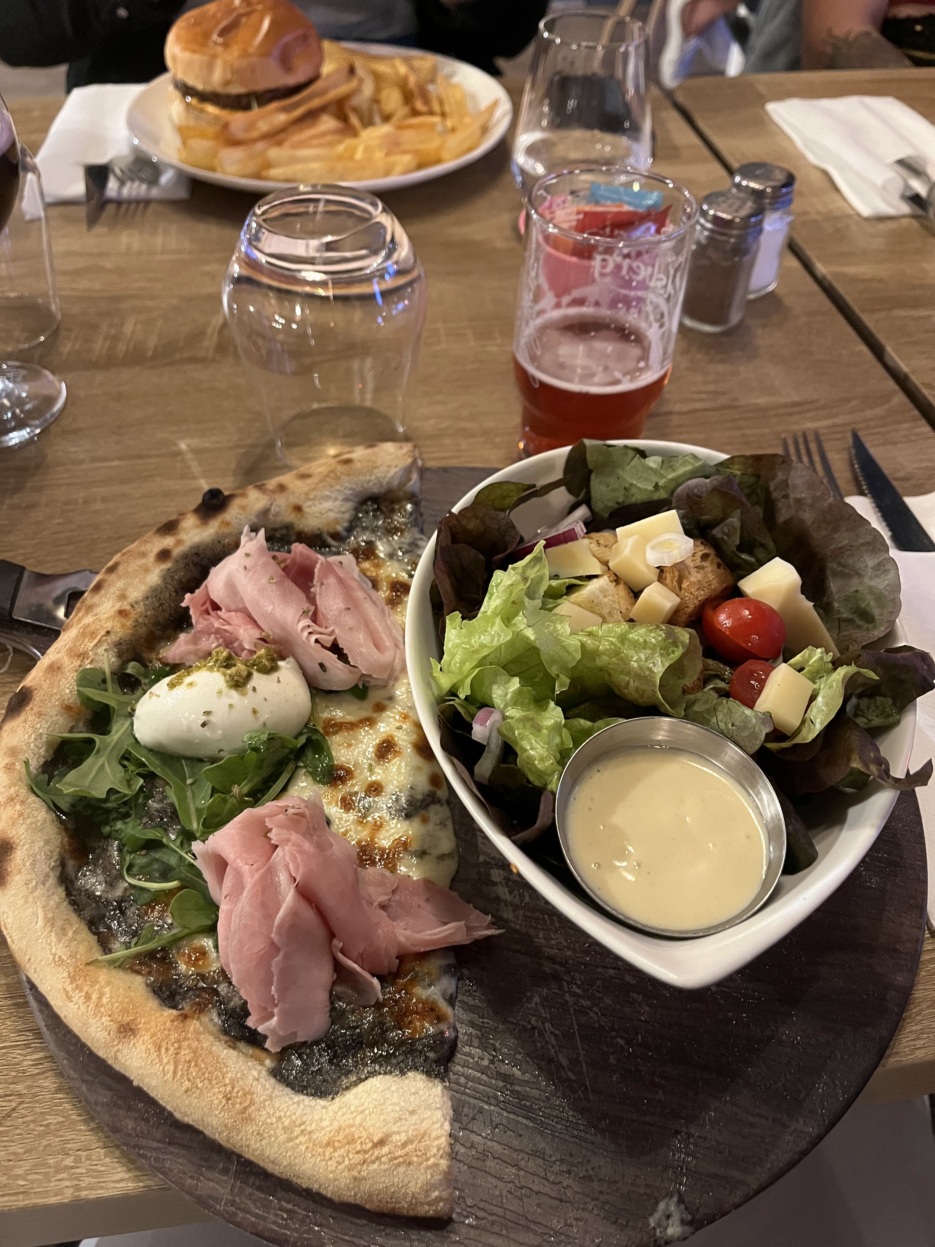 Moment partagé entre amis. Nous avions réservé pour manger . Agréablement surpris de la qualité du repas, un vrai régal avec les Burgers et pizzas.Malgré un petit bug lors de la commande, la serveuse a su réagir, un grand merci. Nous reviendrons avec un grand plaisir
