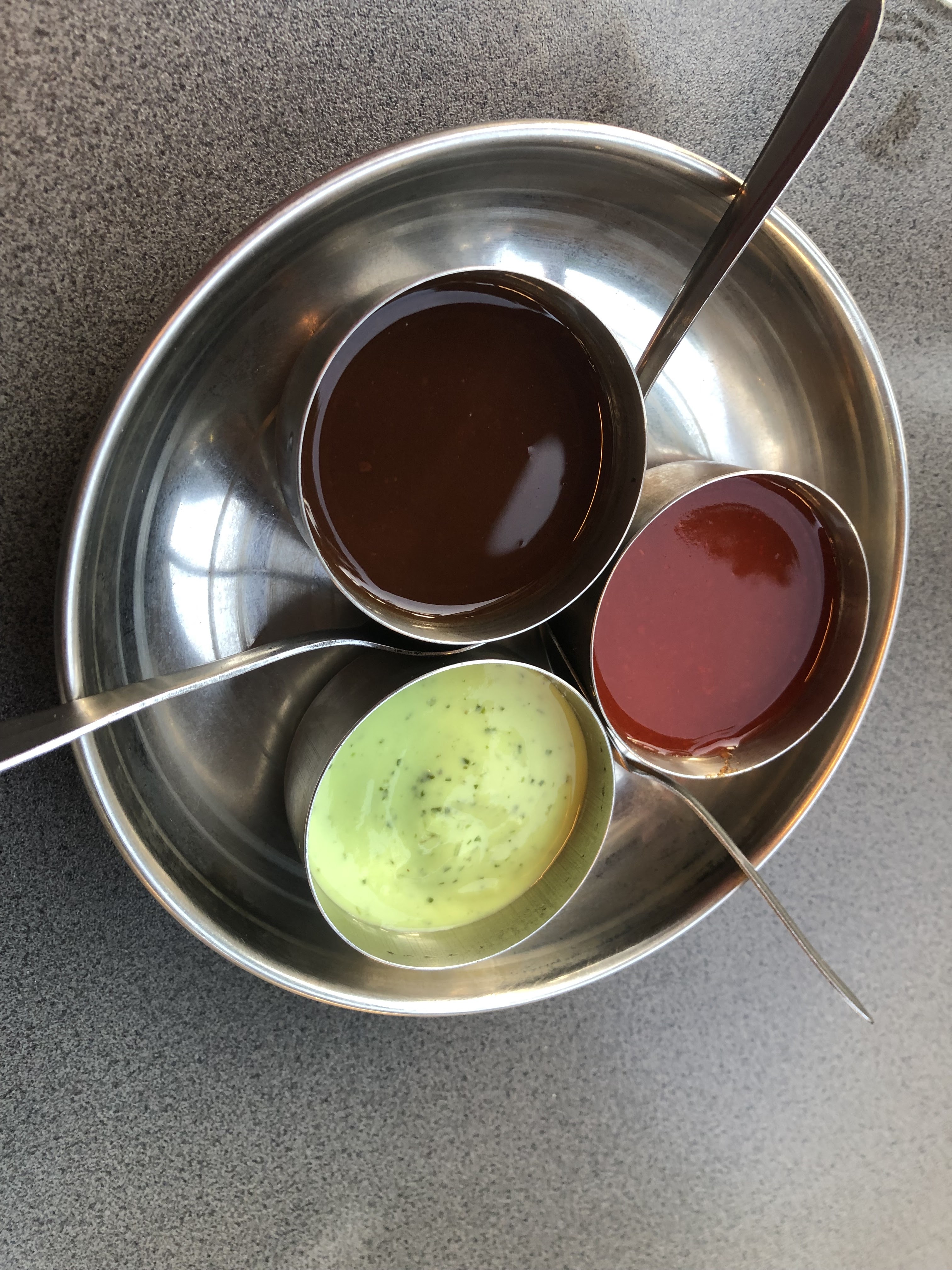 Quel dommage ! Nous voulions diner en famille mais notre fille de 22 mois s'est endormie sur le trajet , nous avons commandé à emporter. Lors de l'attente la petite se réveille, le restaurant est toujours vide je demande à la dame s'il est possible de diner dans le restaurant et la personne me répond que nous avons pris trop de choses ! Je ne vois pas le lien puis me dit que nous avons pris à emporter. Je lui repond effectivement et lui dit juste que notre fille vient de se réveiller et que que nous serions.contents de diner à table. Elle ne change pas d'avis. Je reviens 10 min plus tard chercher notre diner et elle m'explique que les prix ne sont pas les même. Nous aurions bien entendu payer la différence. Les sauces des plats étaient tres bonnes mais la viande tres sèche. Très déçus du peu de compréhension de la gérante.
