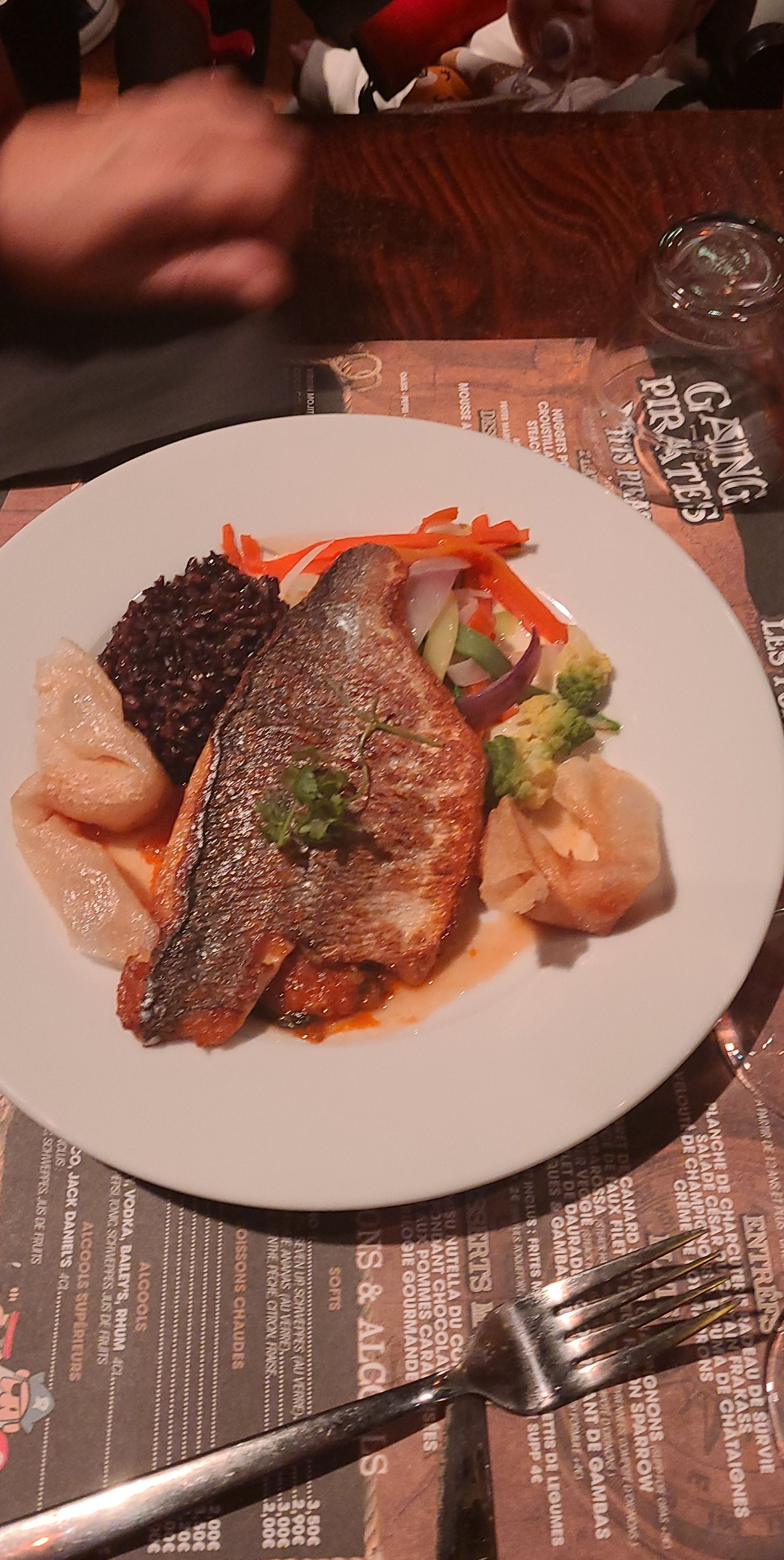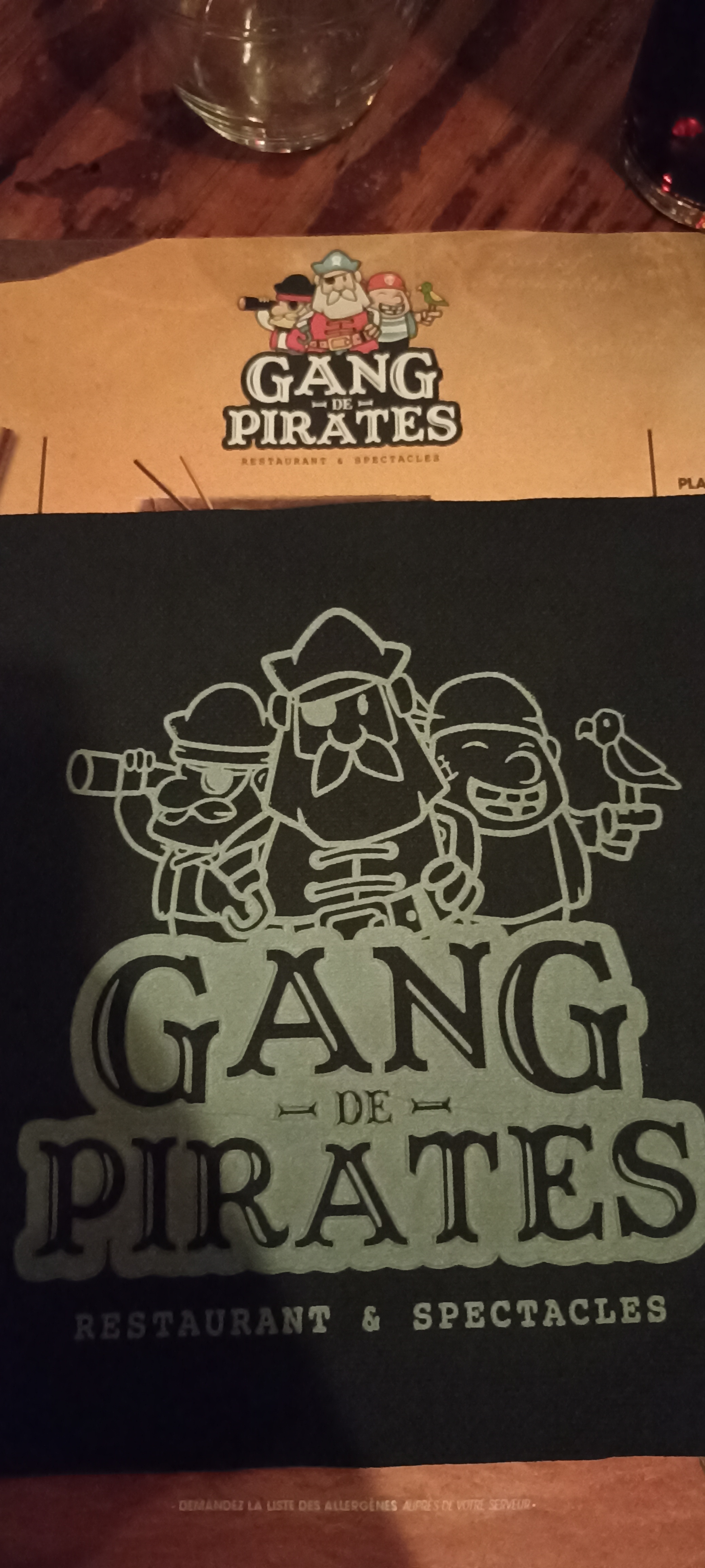Nous avons découvert le gang des pirates ce soir. Nous y avons très bien mangé ! De l'entrée au dessert nous nous sommes régalés. Nos enfants également. Le service et les serveurs ont tous été très professionnels. Le spectacle est sympathique à regarder En revanche je ne peux pas mettre plus de 3 étoiles .. Nous avons été placé a une table, ou la scène n'était pas visible. Nous en avons discuter avec le serveur a notre arrivé, il nous a dit qu'on avait le droit de se déplacer pour regarder la représentation. Seulement quand on vient au restaurant c'est pour manger assis.. Et non debout. A force de vouloir faire trop de chiffre, on en perd le but premier .. Le concept est super sympa. Mais aller dans ce restaurant sans voir le spectacle ce n'est plus le même concept ..