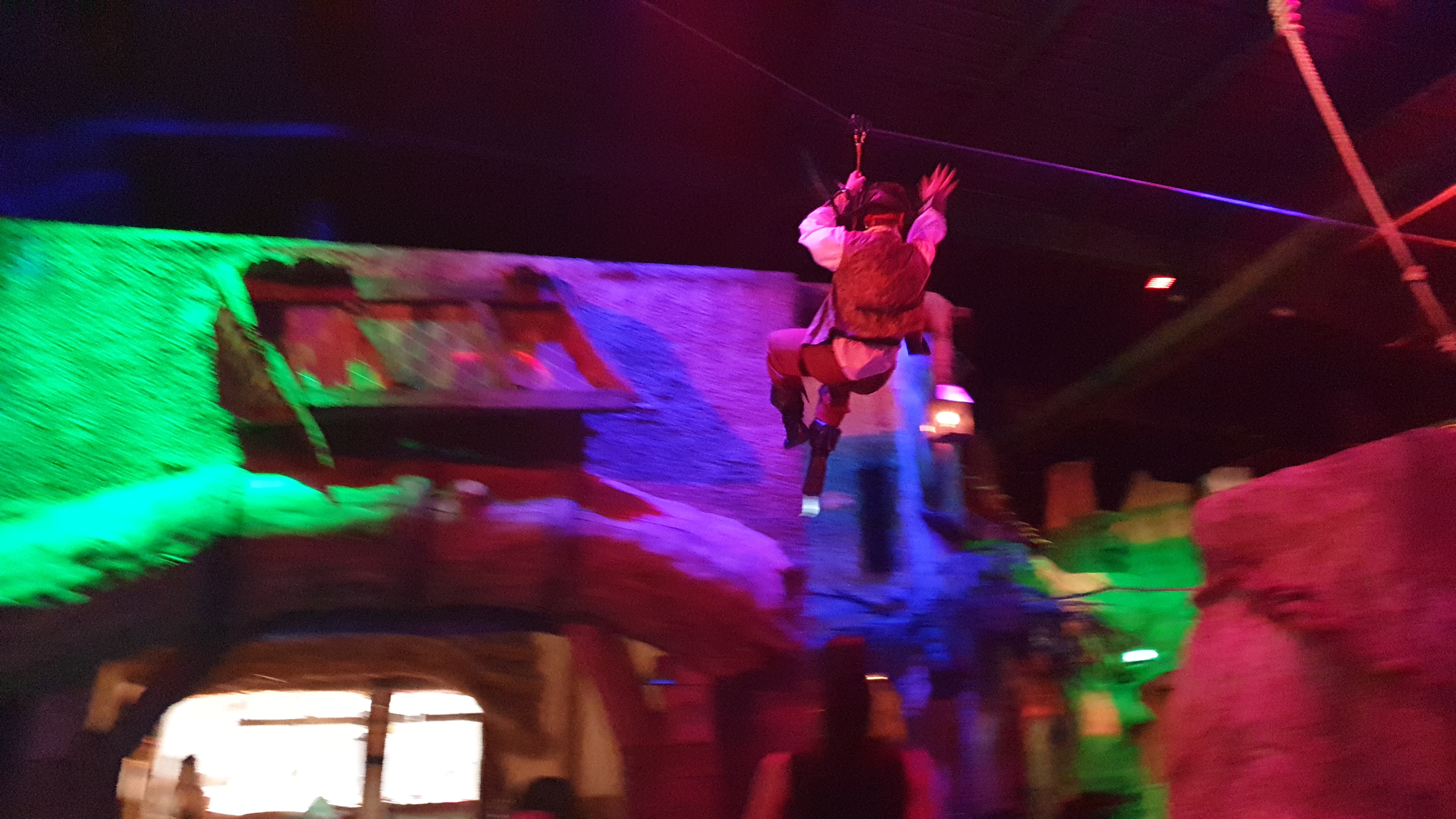 Des l entré on est plongé dans cet univers des pirates. Le personnel joue bien leurs rôles et sont très agréables. Les services se déroulent bien. Afin d être pleinement attentifs au merveilleux spectacle, qui régal les petits comme les grands. Les acteurs, danseurs sont exceptionnels. Juste petit bémol pour les adultes. Ne vous attendez pas à de la grande cuisine. Mais tout les reste rattrape ça.