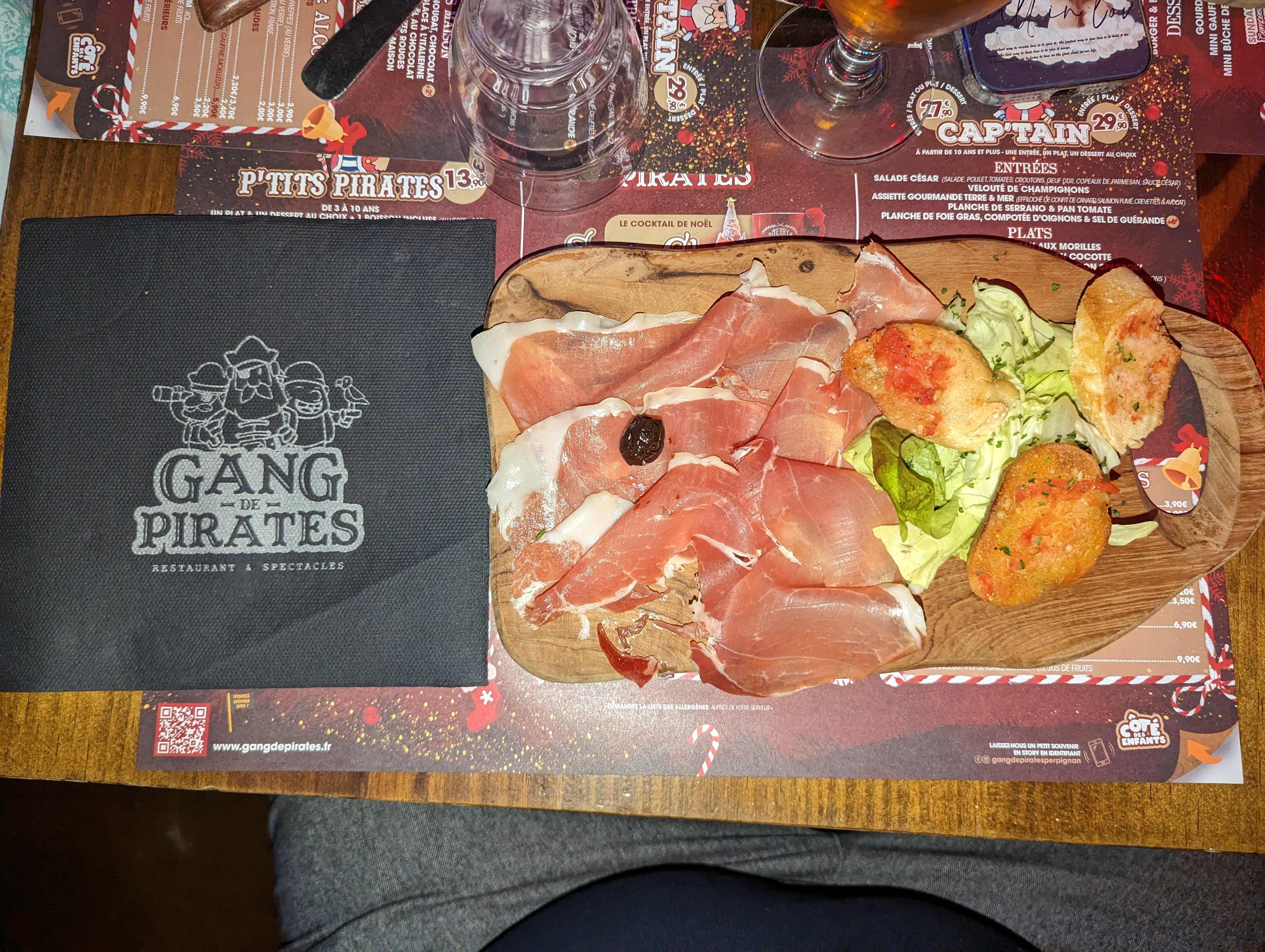 La cuisine est vraiment super ! Anciennement rocher des pirates, le Gang des pirates fait maintenant une cuisine bien plus diversifiée, et de haute qualité ! Bon, les prix sont relativement élevés ( 28€ le menu le moins cher), mais l'ambiance, les spectacles, et la qualité de la nourriture sont impressionnant ! De plus, malgré la grande taille de la salle et l'aire de jeux réserve aux enfant, le son ambiant est franchement correct, et les musique d'ambiance ne sont pas trop fortes. Les spectacles sont adaptés aux grand comme aux petits. Certains passages peuvent être perçus comme un peu appuyé ou forcé mais les chorégraphie tout autour du restaurant sont vraiment travaillée, et correspondent à tout âges ! Bref je recommande vivement ! ( en plus le personnel est adorable)